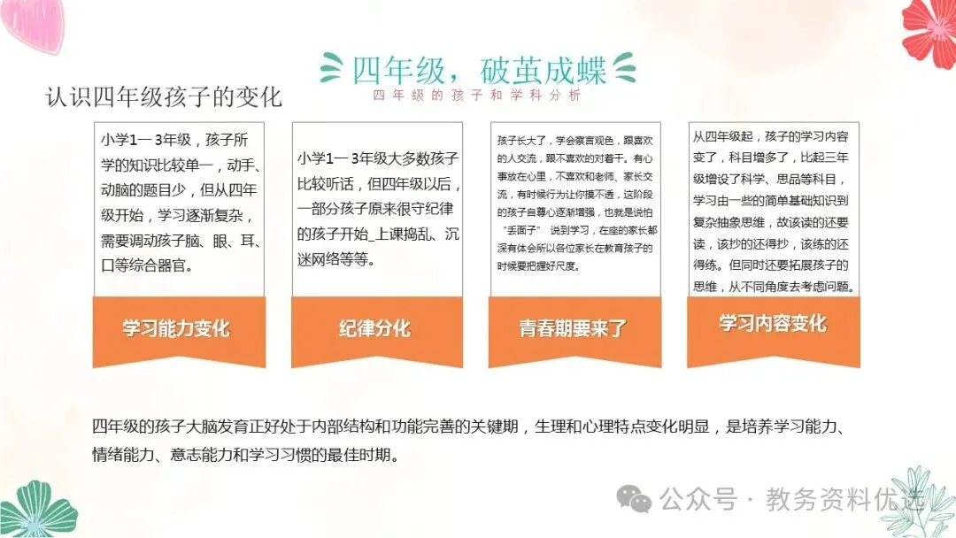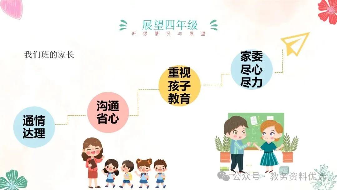 >四年级下学期语文家长会ppt课件:携手同行,守望成长!(含发言稿)
