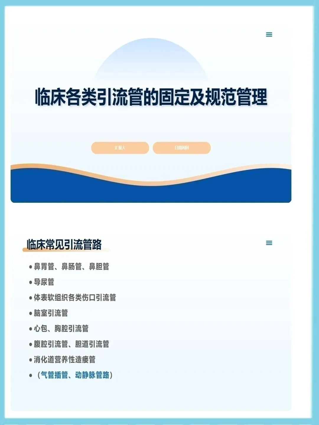 <护理ppt模板>临床各类引流管的固定及规范管理ppt模板(可编辑)
