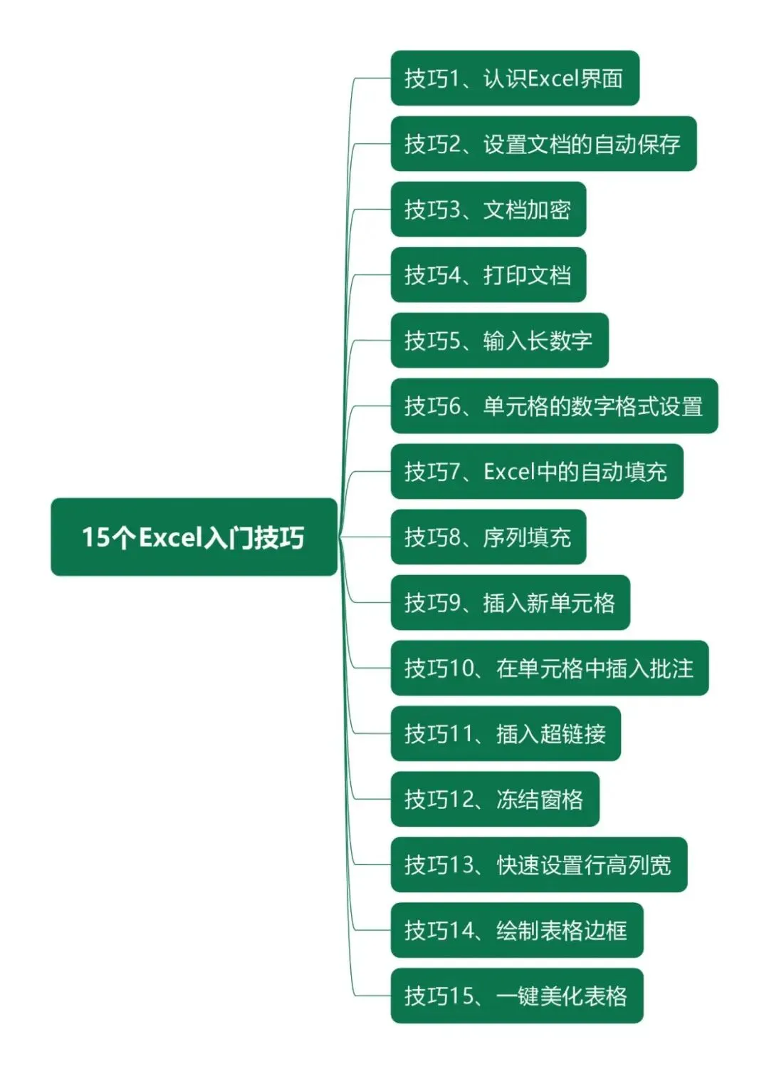 此节分享15个入门操作小技巧,从认识界面,到基础的单元格操作,再到美化表格,都是小白入门操作小技巧,如下:【15个Excel入门小技巧】