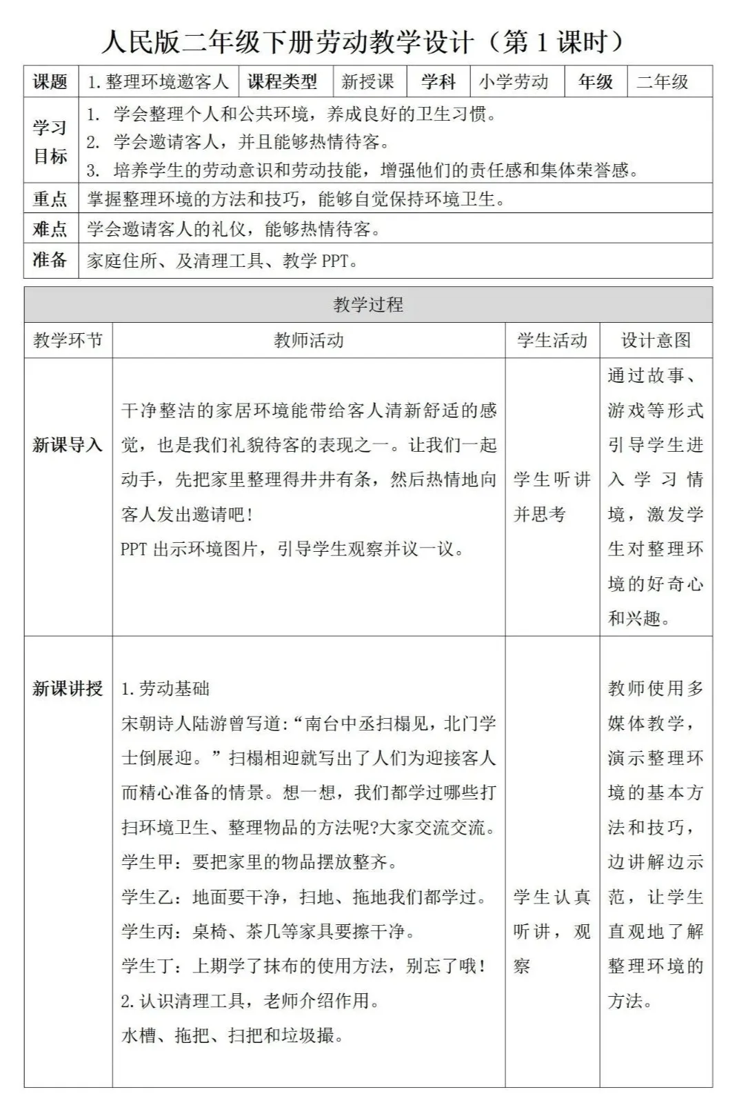 贵州人民版劳动二年级下册教案+ppt课件,可下载!