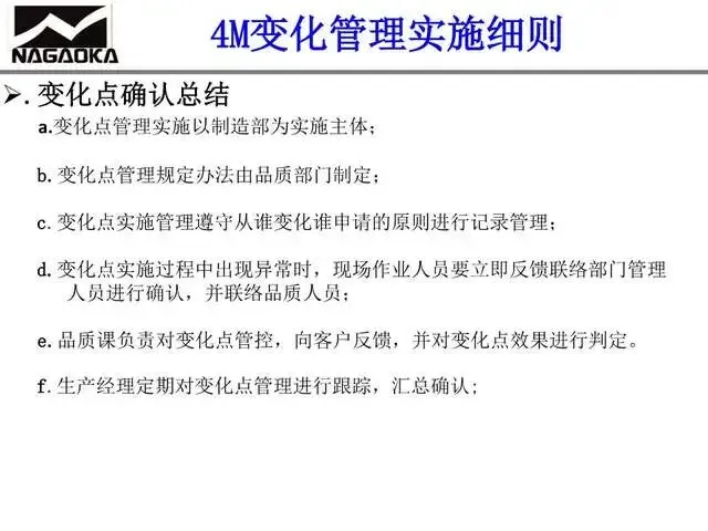 2. 若未按规范执行4M变化点确认,导致产品质量不合格、生产安全事故或效率损失,将追究相关部门及人员责任。