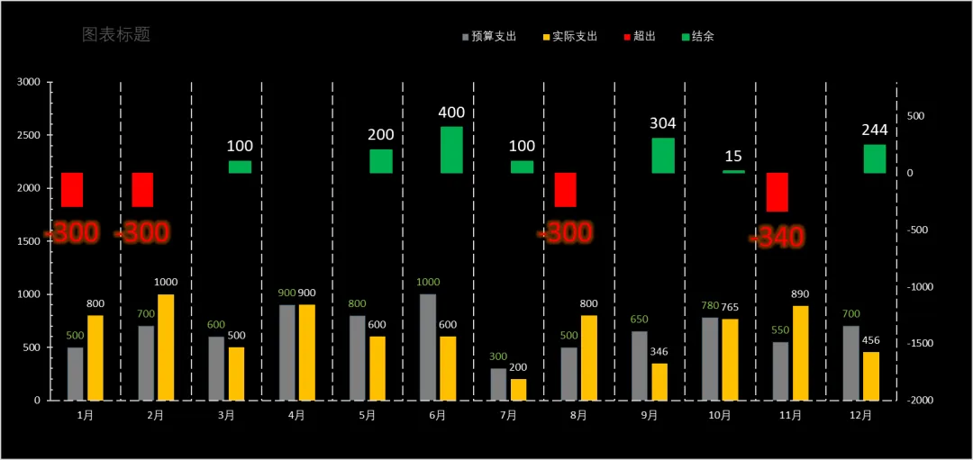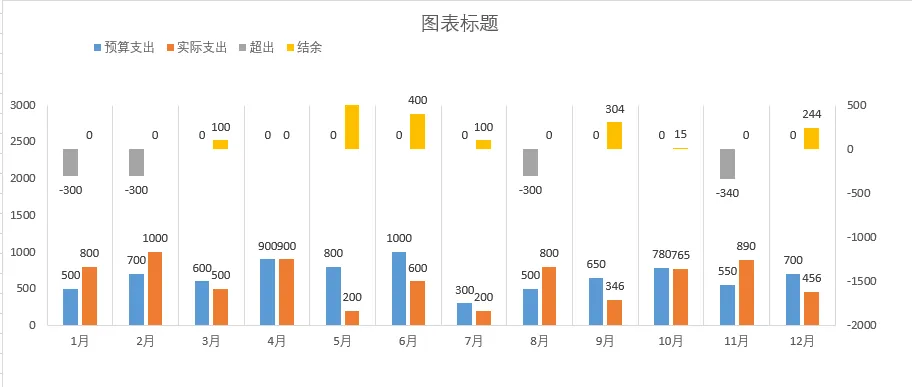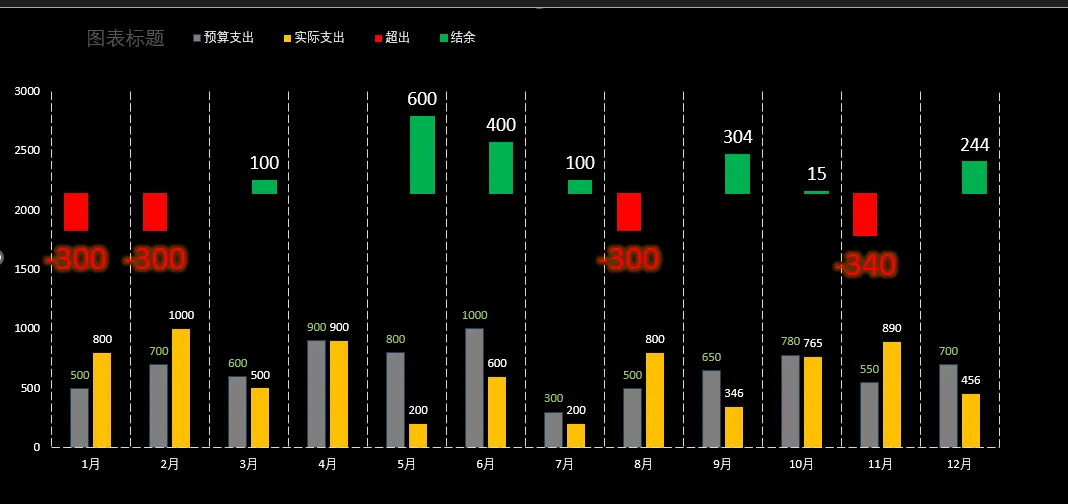 别急——今天我要带你用一张图,搞定全年12个月的预算与支出对比!