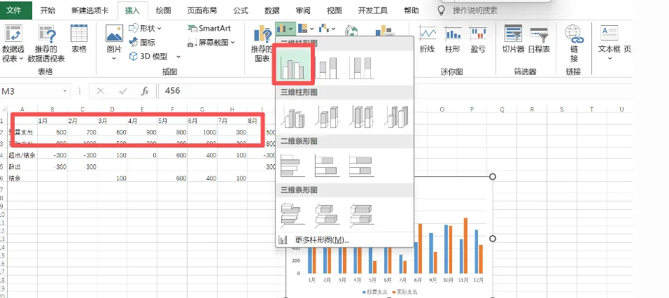 想做个“一目了然”的月度收支对比图,却被复杂的图表类型搞到头大?