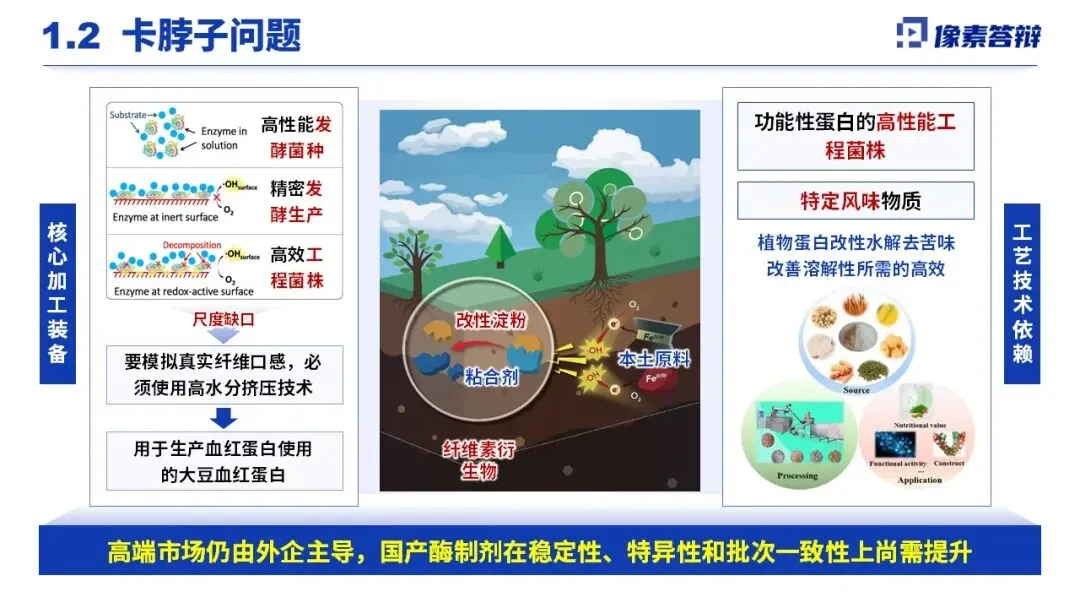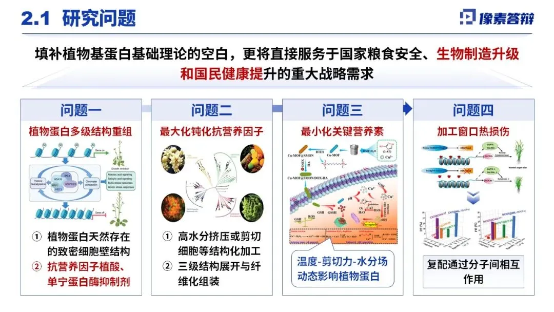 本研究紧扣国家粮食安全、双碳目标等重大需求,聚焦植物基替代蛋白研发,旨在将低价值农作物转化为高价值功能食品,弥补传统蛋白供给缺口。当前行业存在核心加工装备与工艺依赖进口、国产酶制剂性能不足、本土原料改性技术欠缺等卡脖子问题,同时植物蛋白还面临结构致密、抗营养因子高、加工易热损伤、营养素易流失等技术难题,亟待系统性突破。