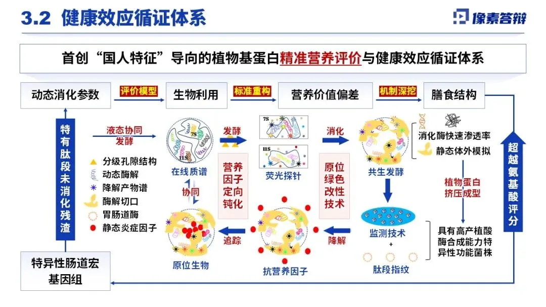 构建 “结构 - 消化” 动态耦合新理论,揭示植物基蛋白结构对酶解的调控机制;首创国人特征导向的精准营养评价与健康效应循证体系,突破传统静态评价局限。研发原位绿色改性、智能创制等核心技术,攻克高端高水分挤压装备国产化难题,实现工艺 - 装备协同调控,还筛选出特异性功能菌株,解决植酸等抗营养因子钝化、营养素定向保留问题,相关成果被WHO采纳,牵头成立国际联盟提升我国国际学术话语权。