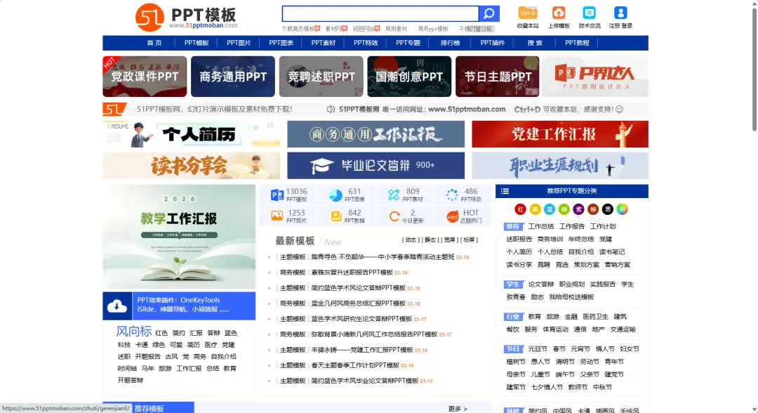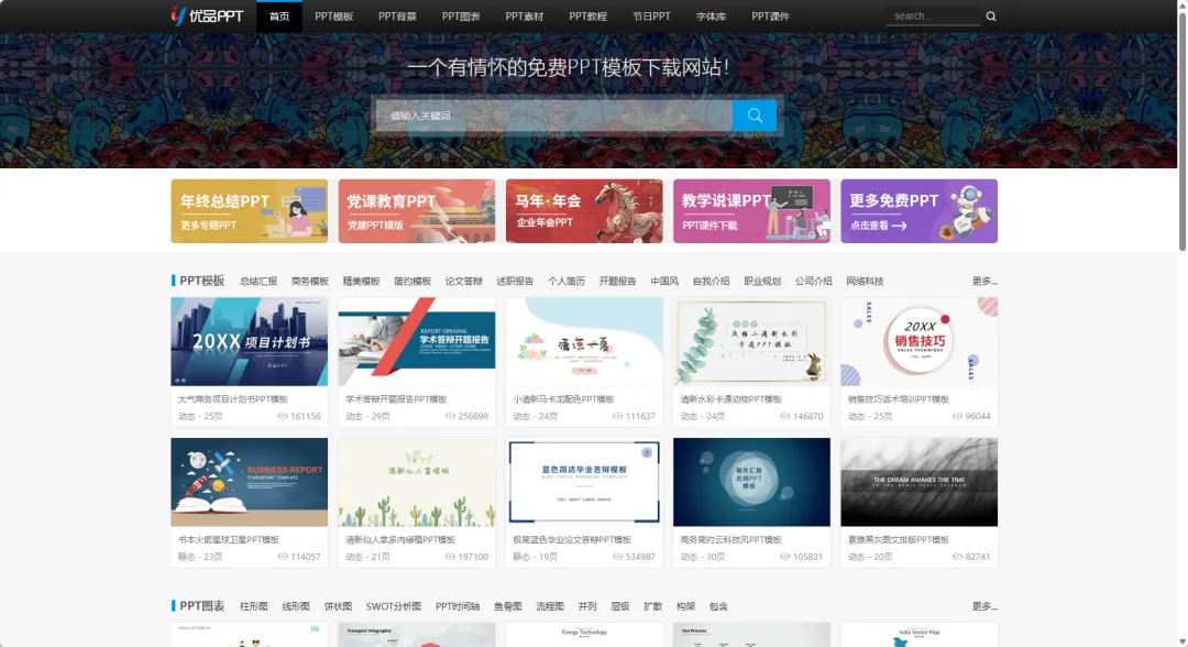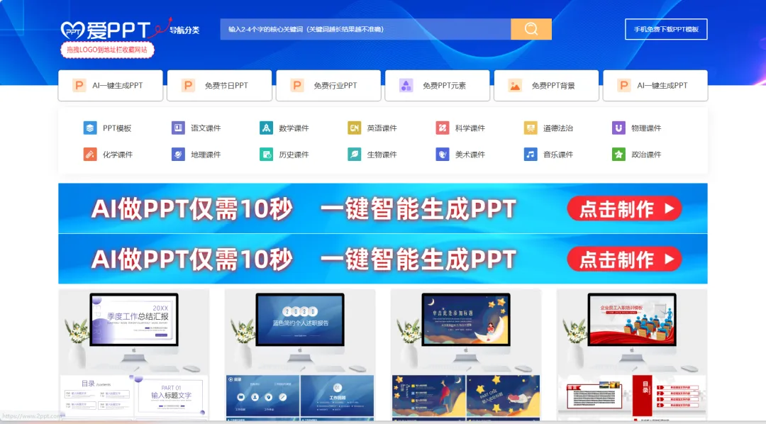 专注于高质量免费PPT模板下载的网站,提供PPT图表、背景图片、素材等资源。特别适合教育工作者,提供大量中小学各科课件PPT,涵盖不同出版社版本。