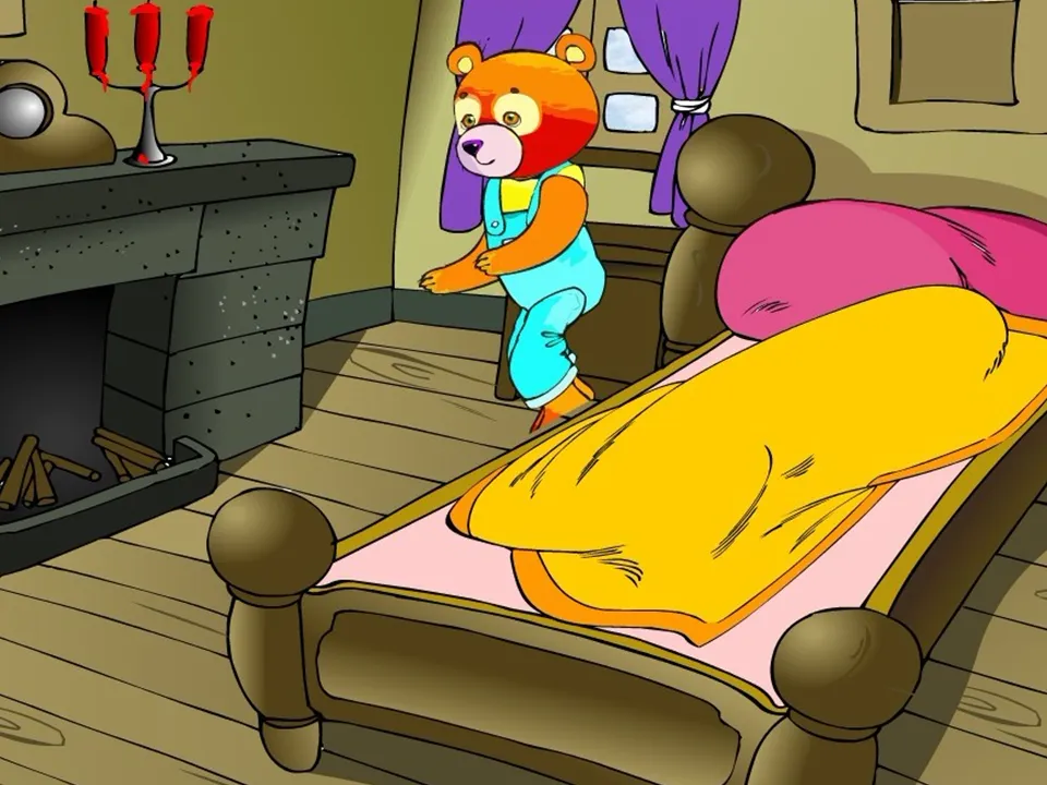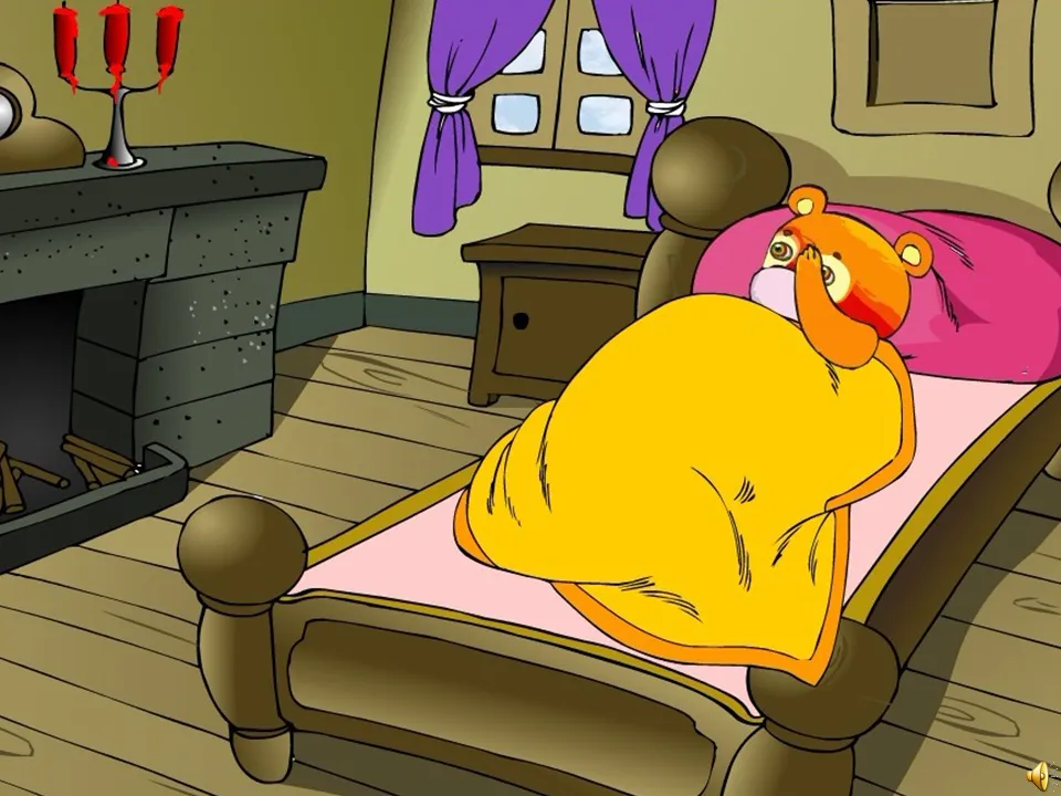 2.师:“轰隆隆”打雷了,冬眠的小熊被吵醒了。(出