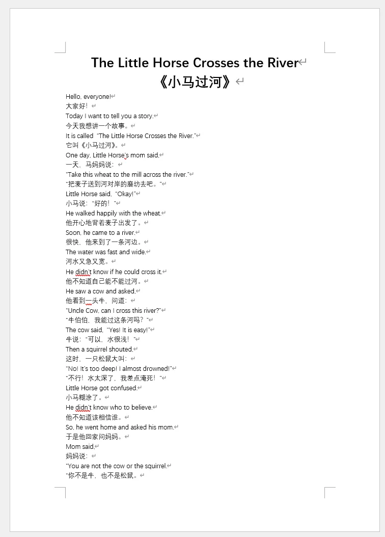 word文档,包含中英双语稿、纯英文稿、支持直接打印,方便孩子背诵