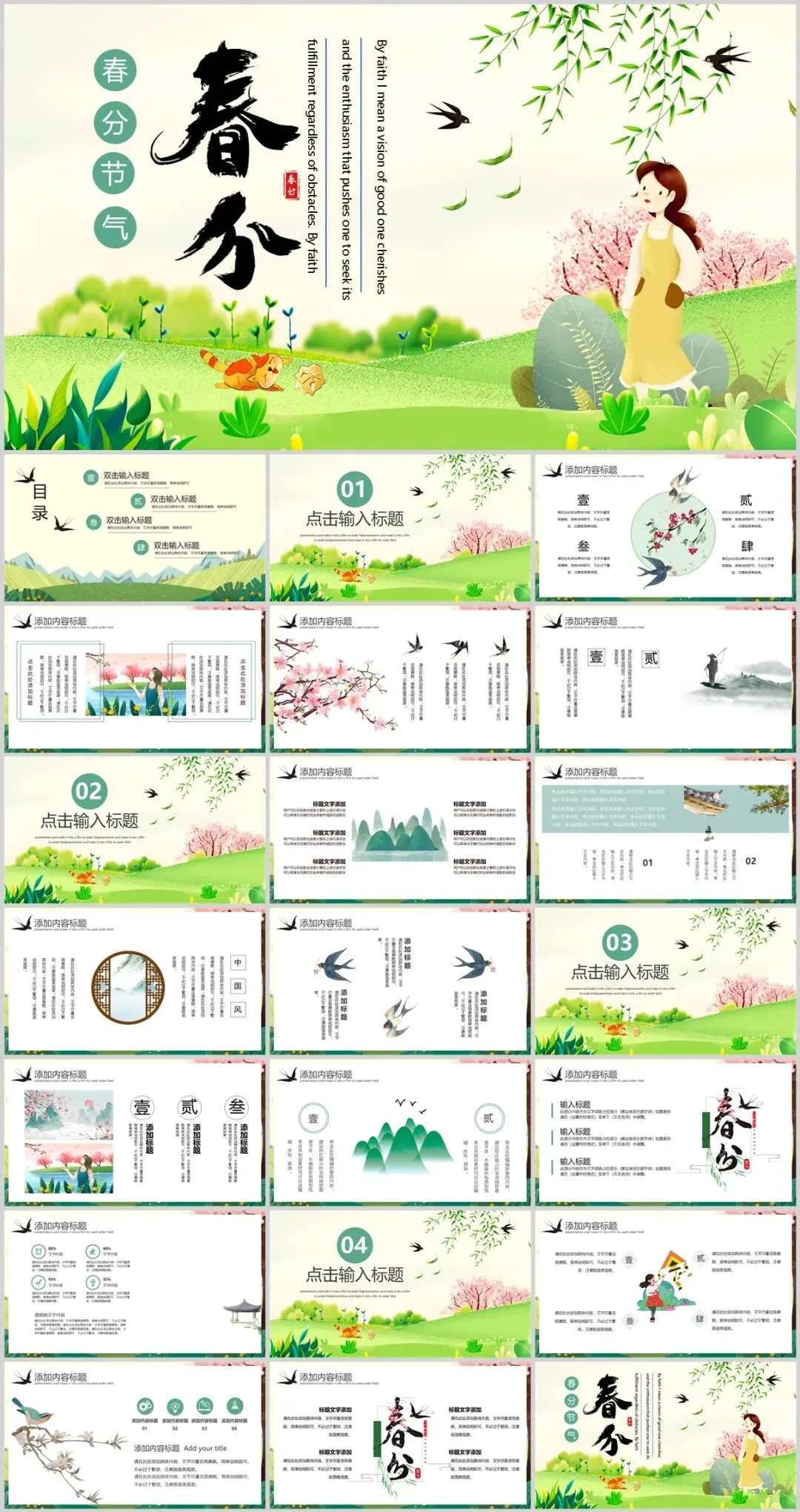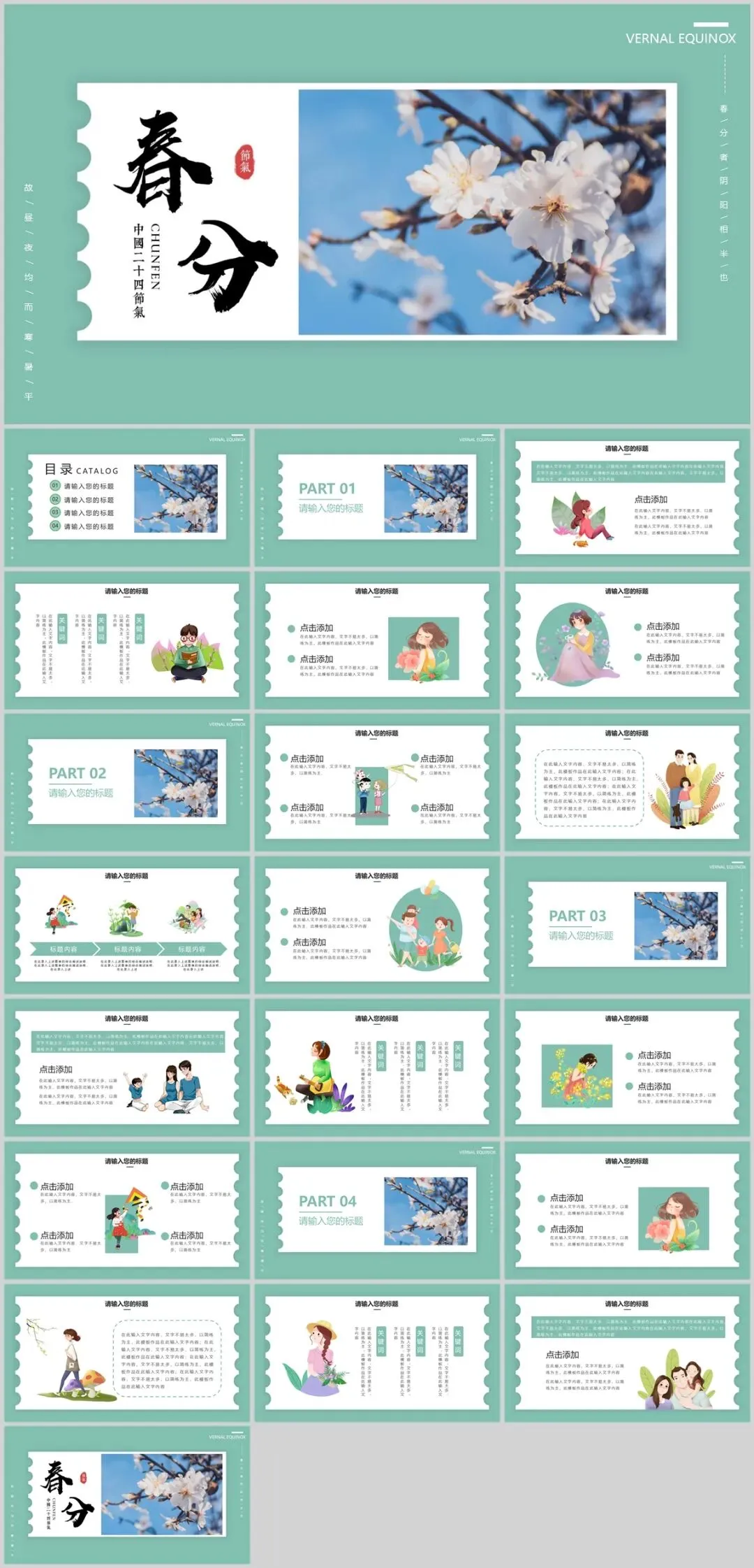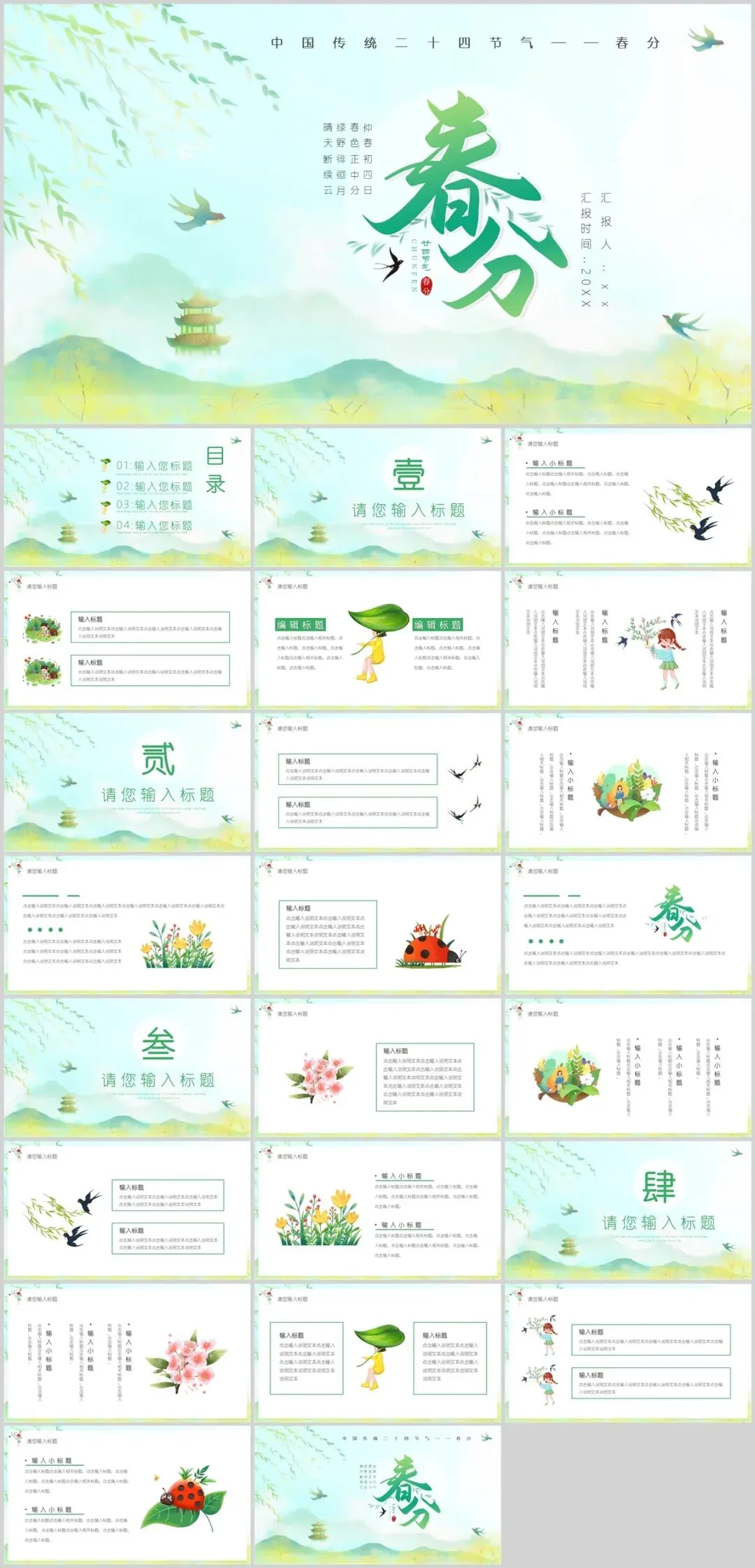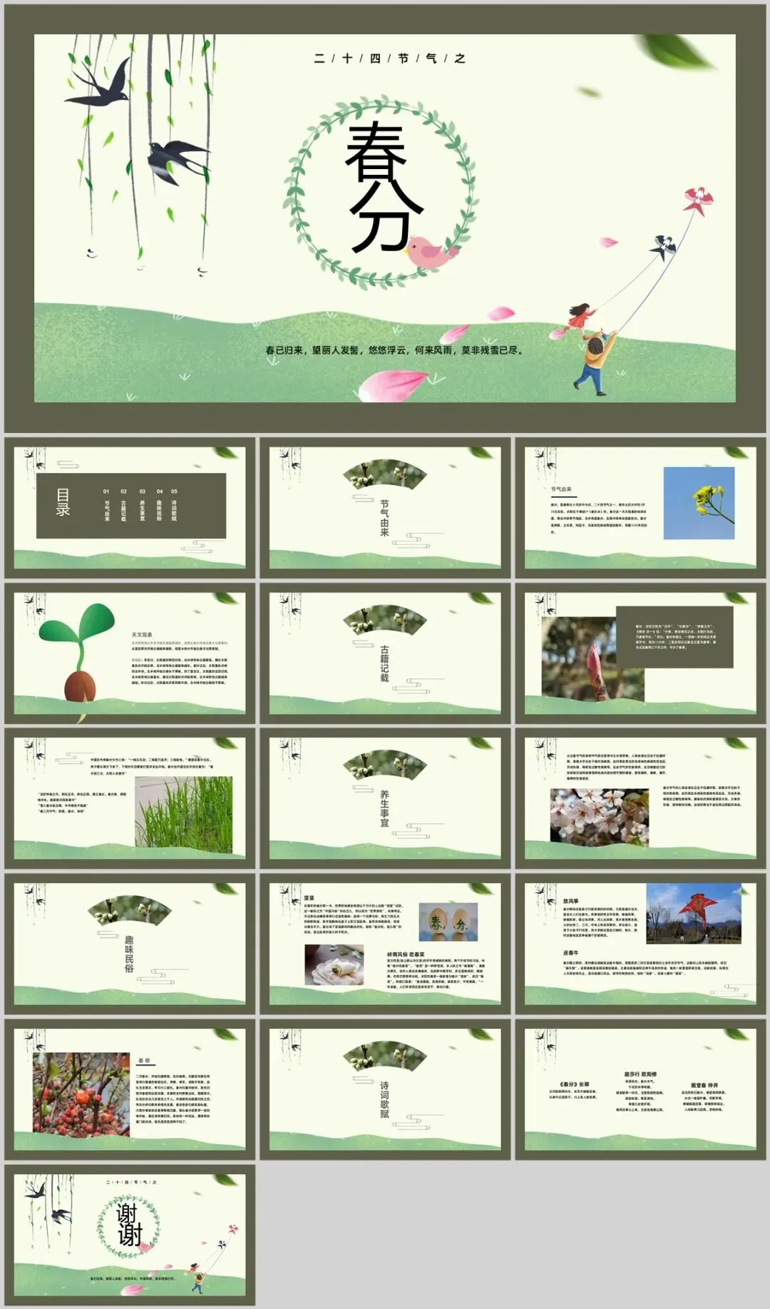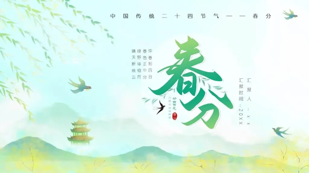 简洁清新!分享10套春分节气PPT,中国古典风格模板很有意境!