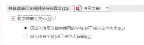「文件-选项-保存」选择将字体嵌入文件,就再也不担心拷贝到别的电脑上打开都是乱码了。