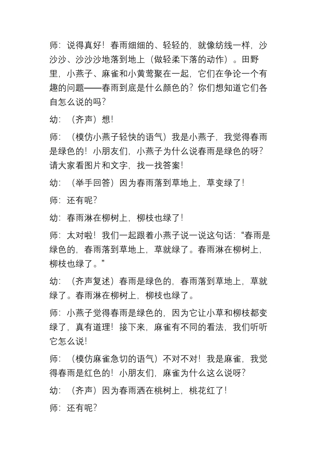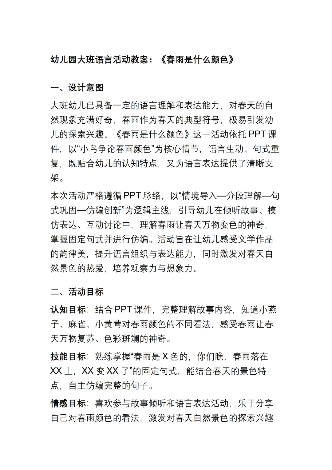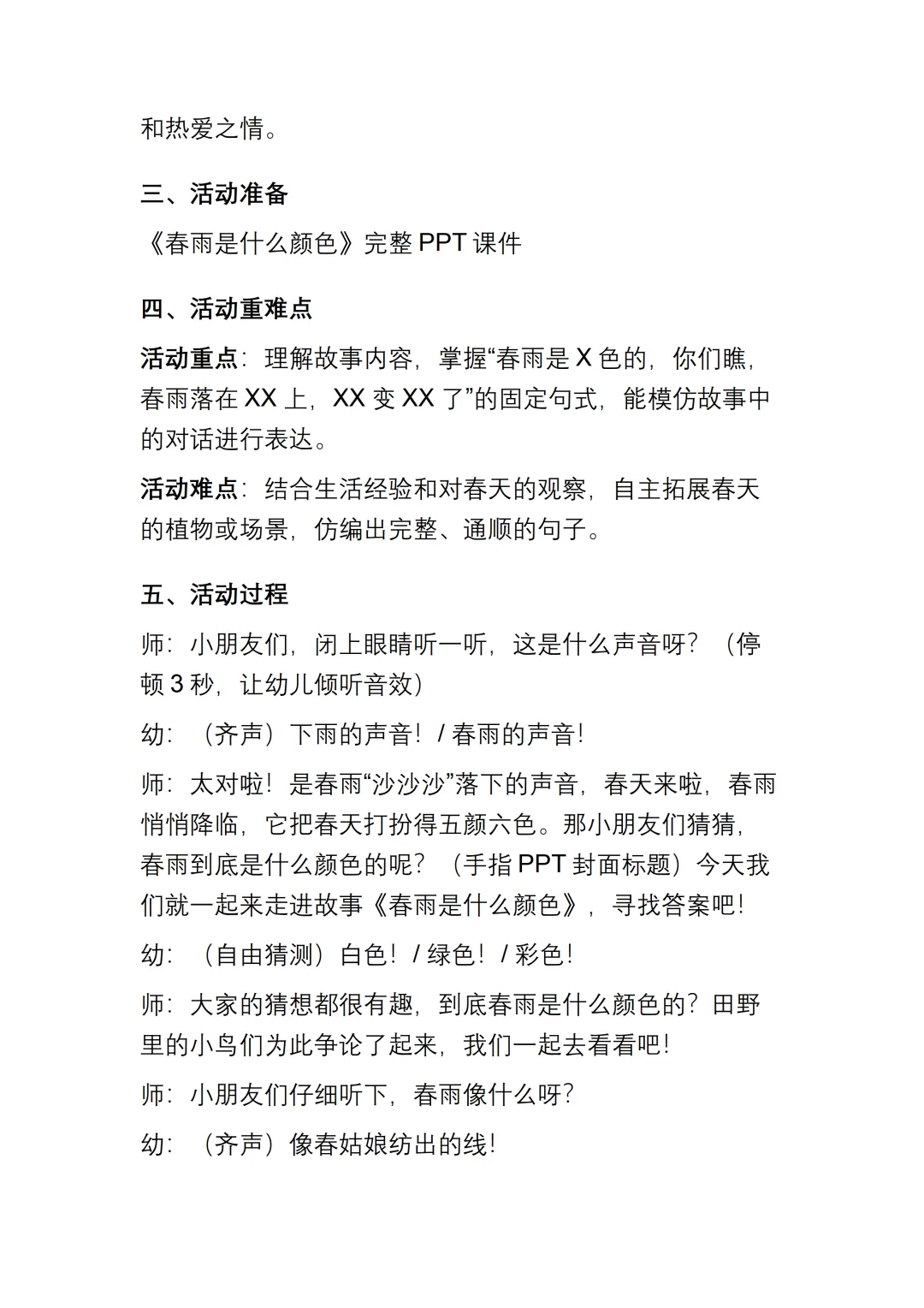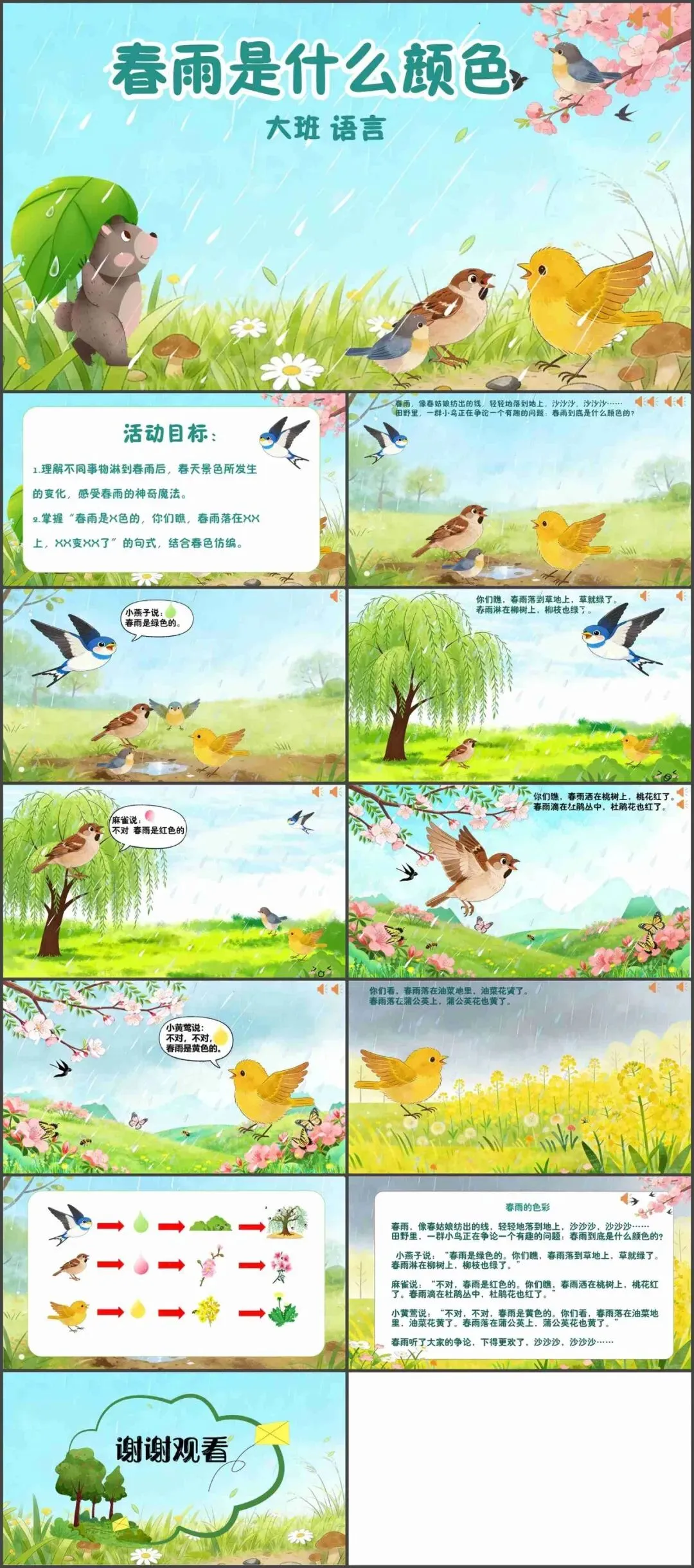 幼儿园大班语言《春雨是什么颜色的》动态PPT课件+教案+说课稿