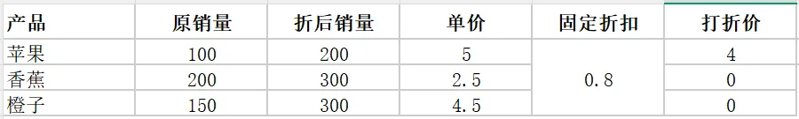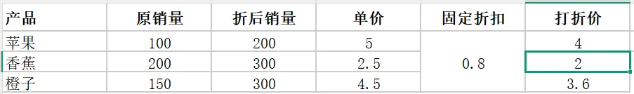 但是有时候我们不想让它自动变化,比如三个产品是固定折扣,要计算打折价。如果直接下拉填充,会产生下面的结果: