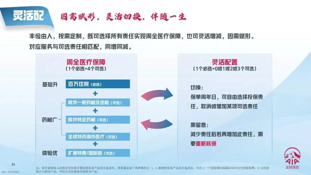 2.保单周年日可切换:每年保单周年日,消费者可自由选择增加、取消某项可选责任,适配结婚、生子、退休等不同人生阶段的医疗需求变化。