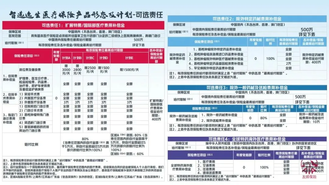 相较于友邦此前的智选康惠荣耀2022、卓越逸生等产品,智选逸生医疗险在保障责任、药械覆盖、就医体验等方面实现全方位升级,核心优势一目了然。