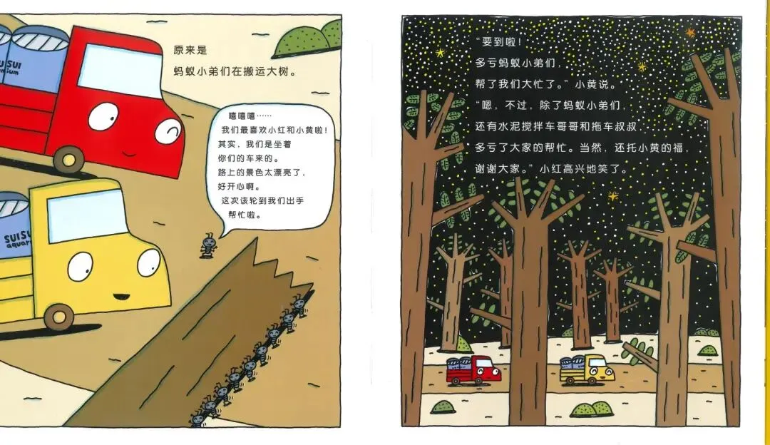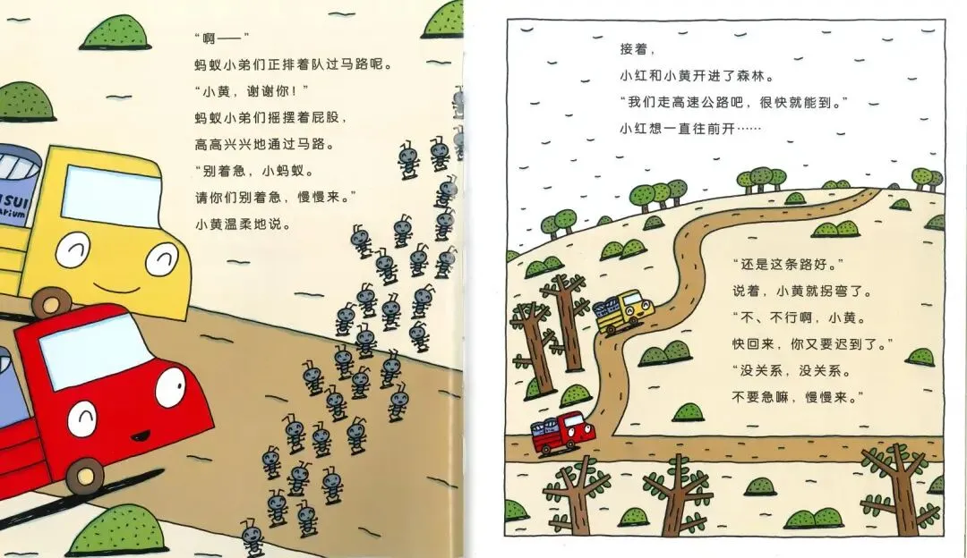 谁能拒绝宫西达也的小卡车绘本啊🚛 软萌的画风+温暖的内核,《小红和小黄》真的挖到宝了!
