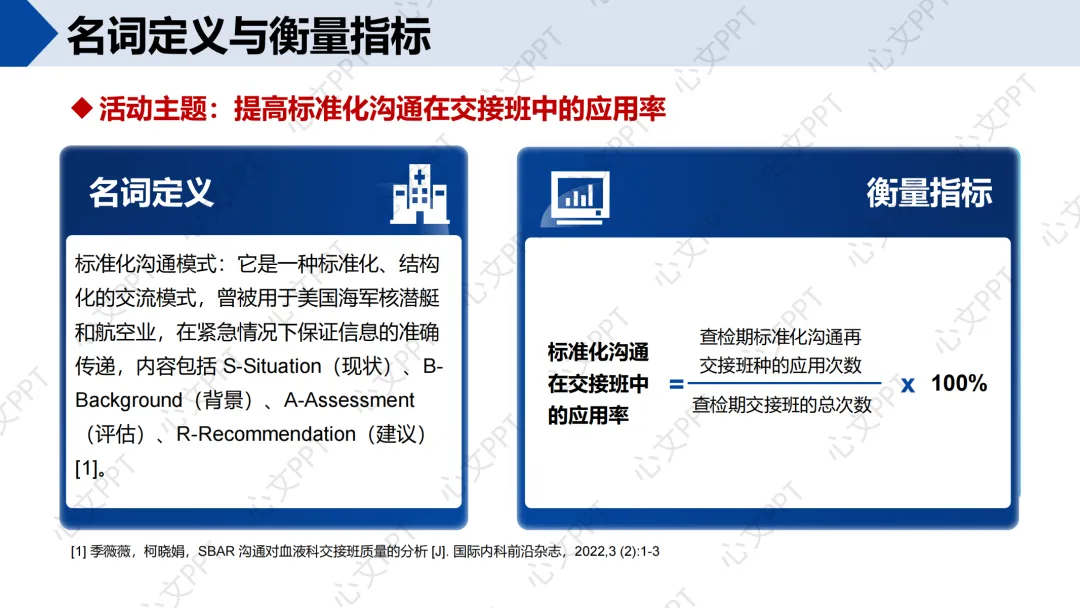 标准化沟通是指采用SBAR结构化沟通模式,即现状(Situation)、背景(Background)、评估(Assessment)、建议(Recommendation),确保信息传递准确、完整。