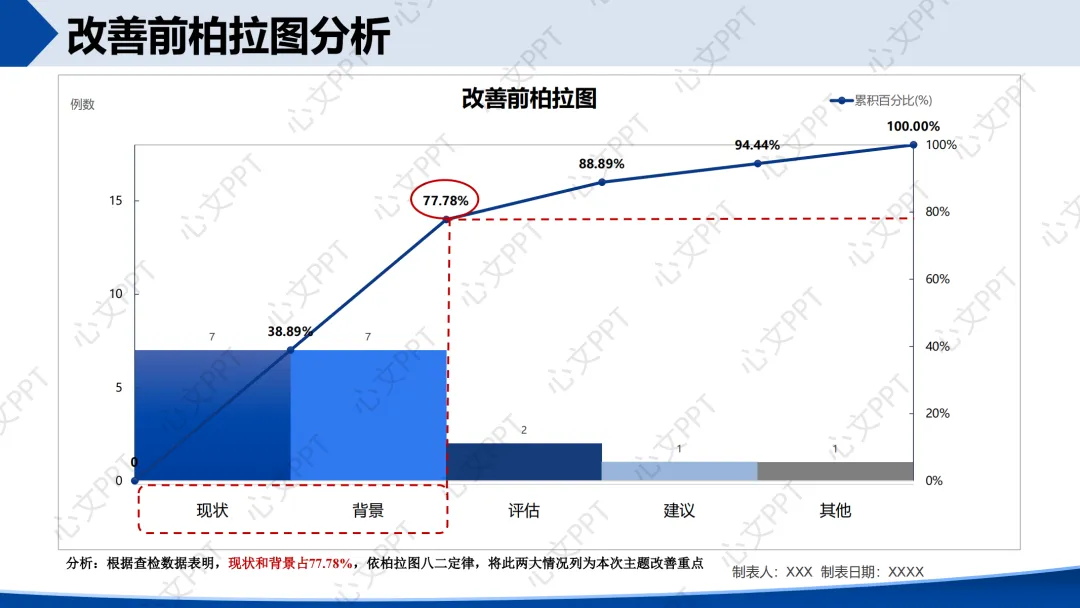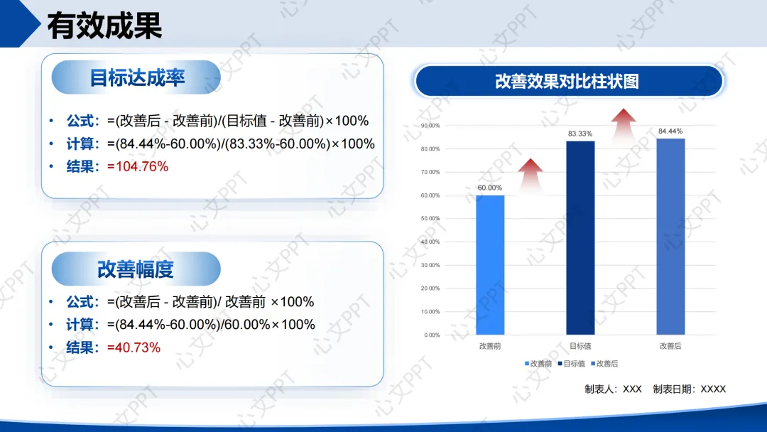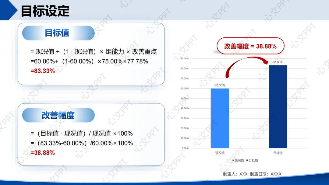 结合组能力(75.00%)和改善重点(77.78%),我们设定目标值为83.33%,改善幅度为38.88%。