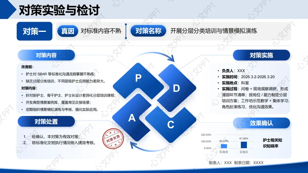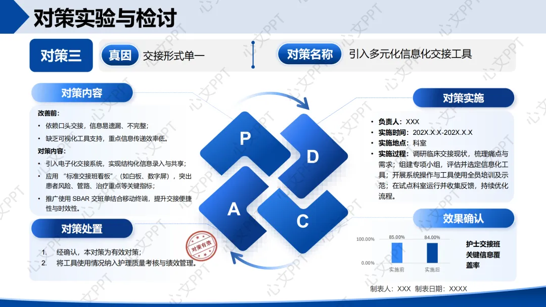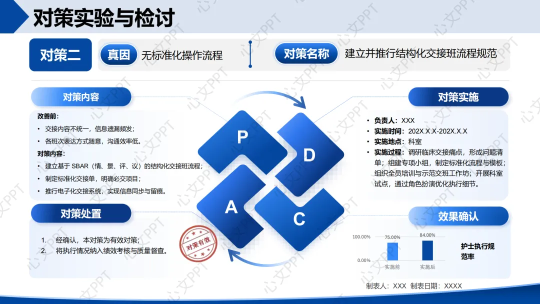 措施:制定并推行结构化交接流程,配套标准化交接单,纳入绩效考核。