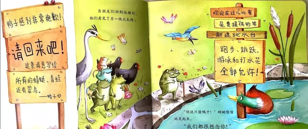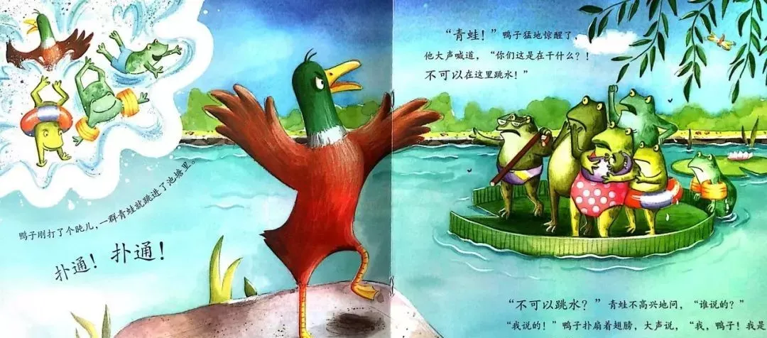 “这儿可没有鸭子来赶我们走!”青蛙们呱呱地喊道。