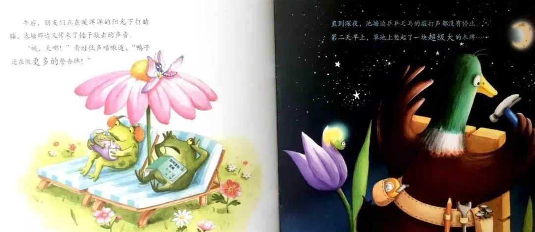 “哦,天哪!”青蛙低声嘟囔道,“鸭子还在做更多的警告牌!”