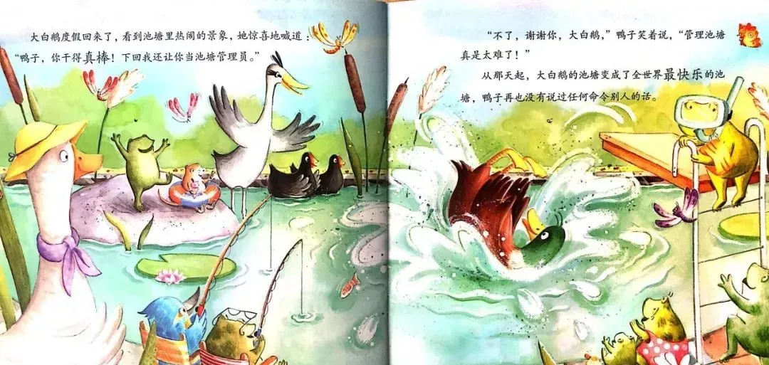 “不了,谢谢你,大白鹅。”鸭子笑着说,“管理池塘真是太难了!”