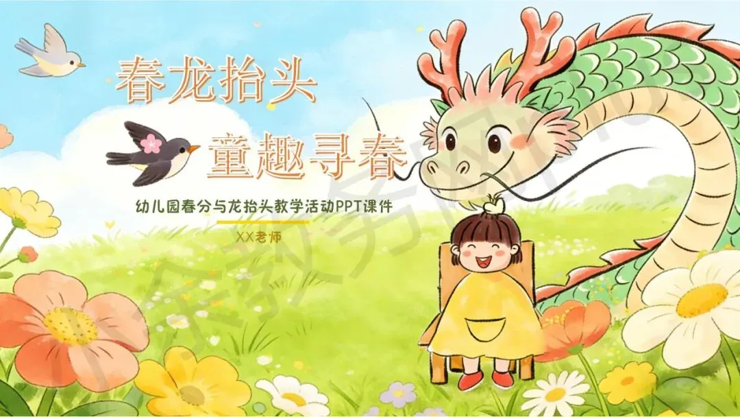 幼儿园春分与龙抬头教学活动 PPT 课件《春龙抬头,童趣寻春》模板推荐。