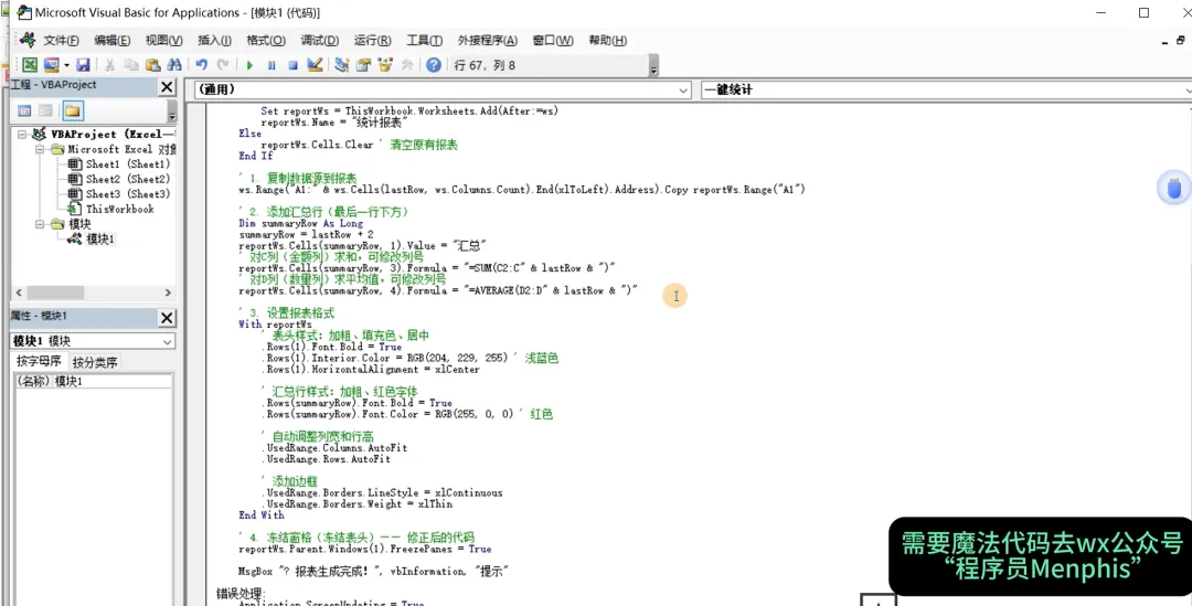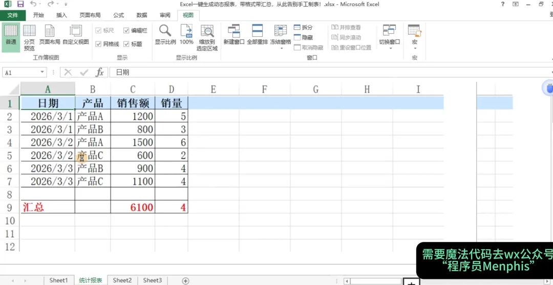 今天就把这个一键生成动态统计报表的VBA宏分享给你,以后做报表,点一下,所有格式、汇总、冻结自动搞定。