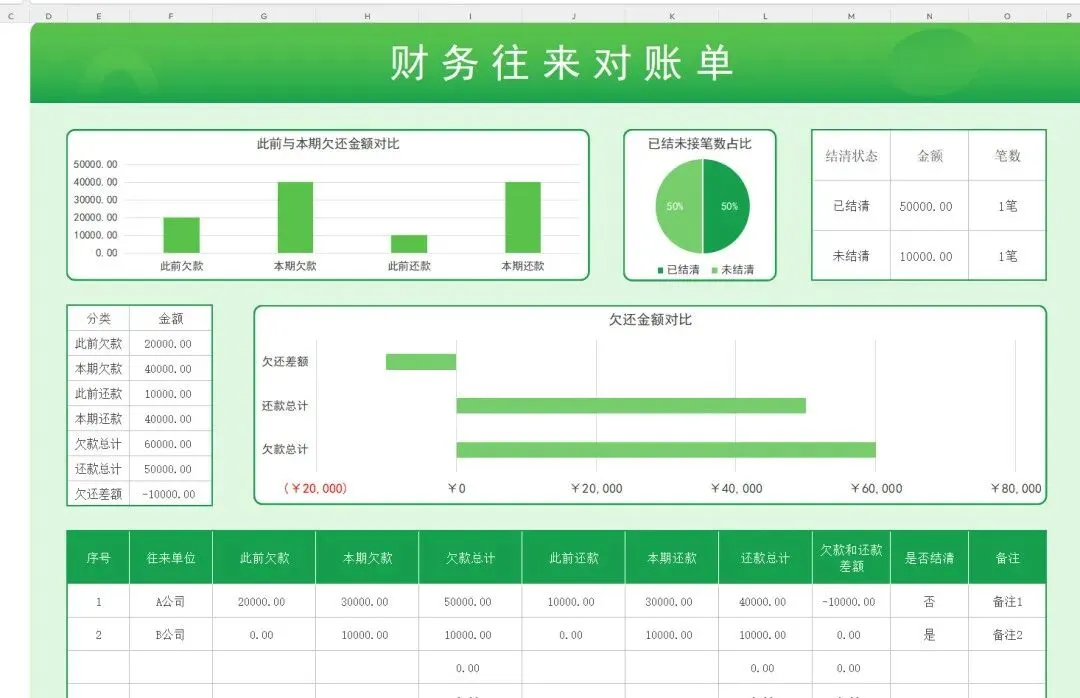 会计月末必备:全自动Excel对账单模板!含客户往来对账单、应收应付对账管理系统,财务可一键套用!