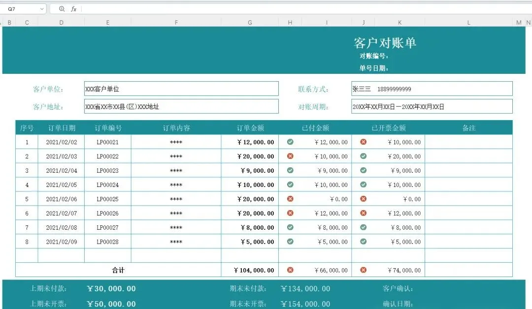 客户对账单模板
