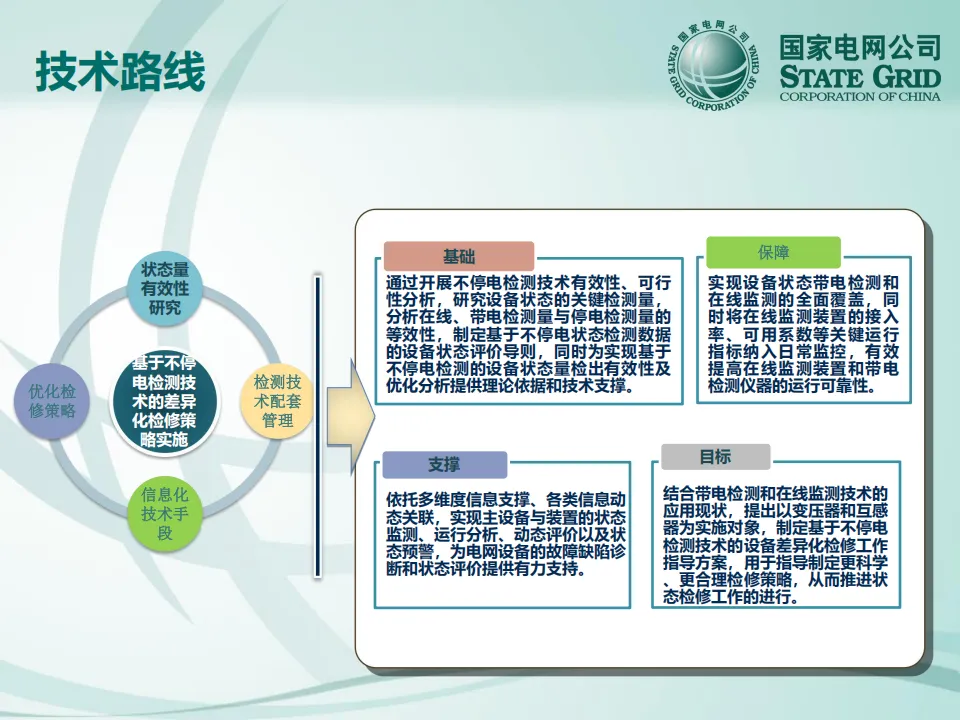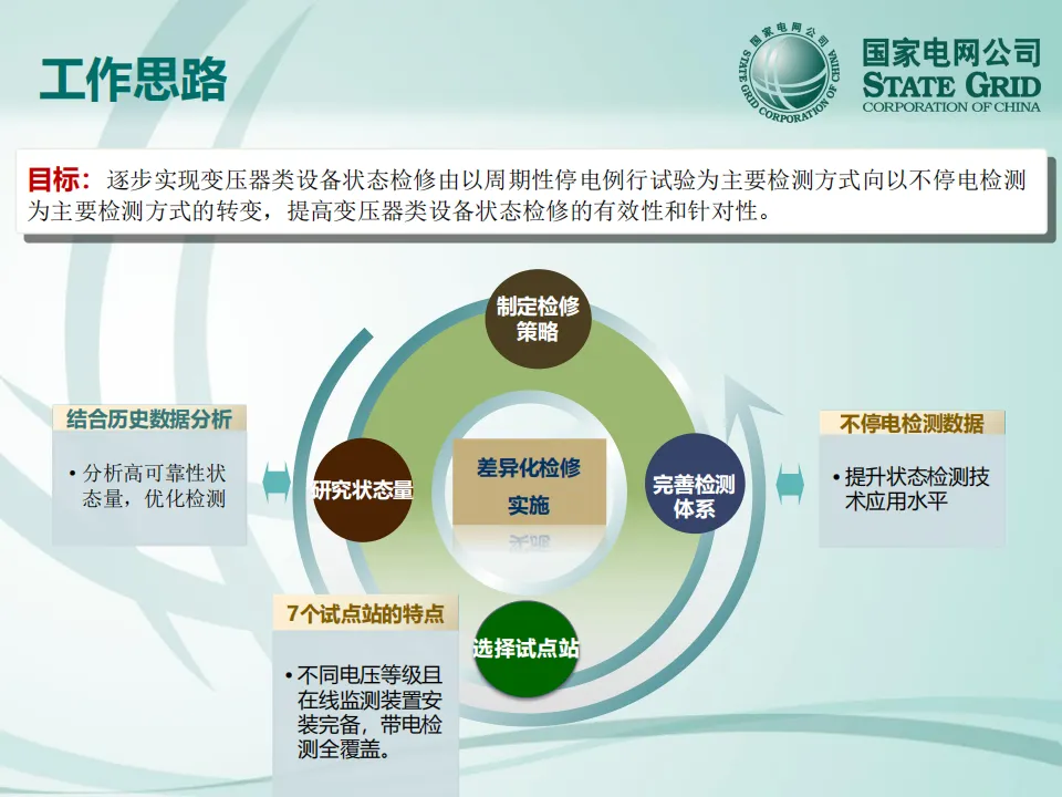 项目目标:逐步实现变压器类设备状态检修由以周期性停电例行试验为主要检测方式,向以不停电检测为主要检测方式的转变,提高状态检修的有效性和针对性。