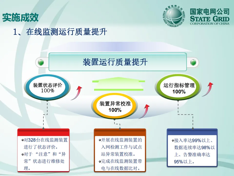 ✅ 高效运维:在线监测装置接入率达99%以上、数据连续率达98%以上、告警准确率达95%以上