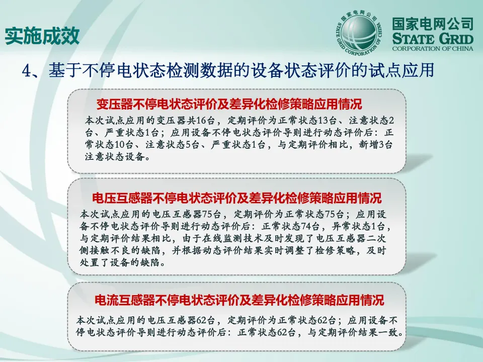 ✅ 精准检修:试点应用中,通过不停电状态评价发现3台变压器由"正常状态"转为"注意状态",1台电压互感器被及时判定为"异常状态"并得到处理