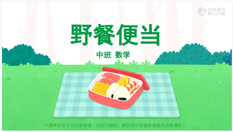>幼儿园中班数学公开课——《野餐便当》PPT+教案+纸面教具 分享