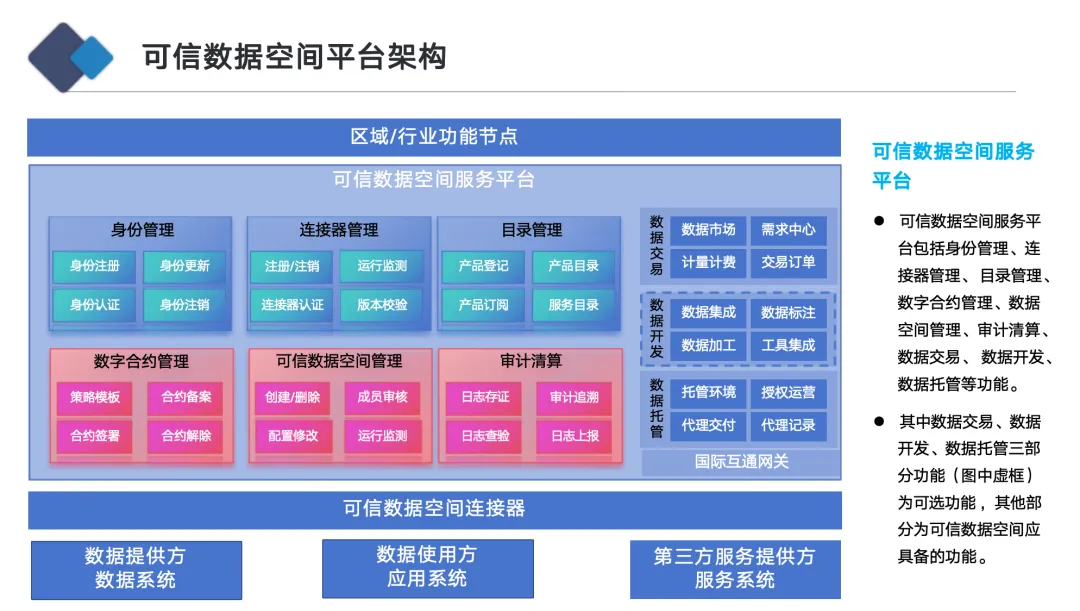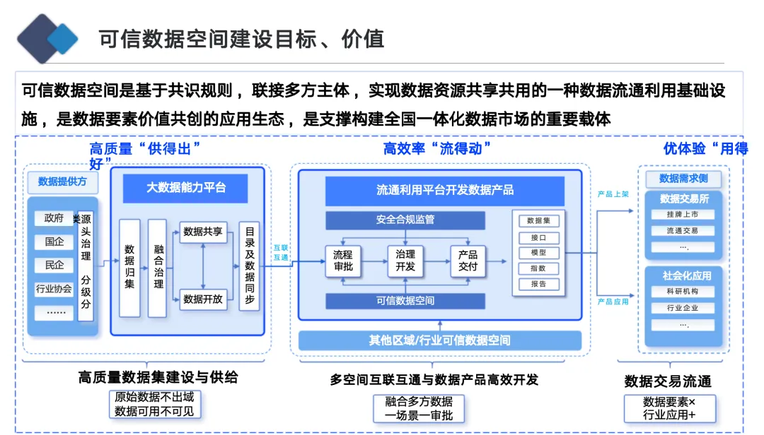 可信数据空间是基于共识规则 ,联接多方主体 ,实现数据资源共享共用的一种数据流通利用基础设施 ,是数据要素价值共创的应用生态 ,是支撑构建全国一体化数据市场的重要载体。可信数据空间的推广应用开始在医疗、金融、工业等领域逐步落地,并复制推广。