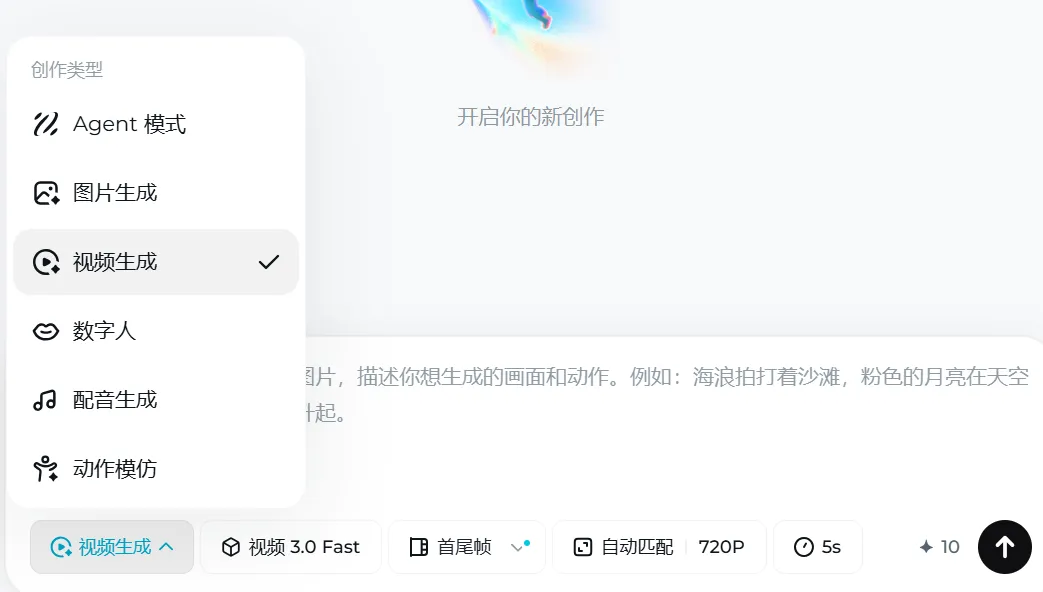 选择即梦的「 视频生成」功能,然后上传图片。