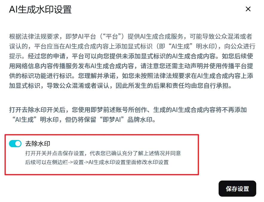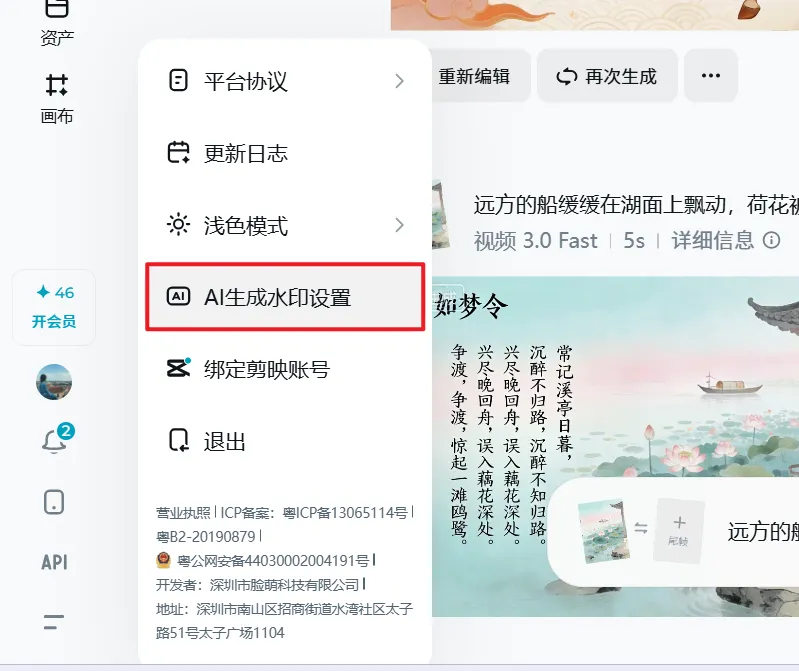 如果不想导出的视频带有即梦的水印,可以在左侧功能栏找到「AI 生成水印设置」👇👇