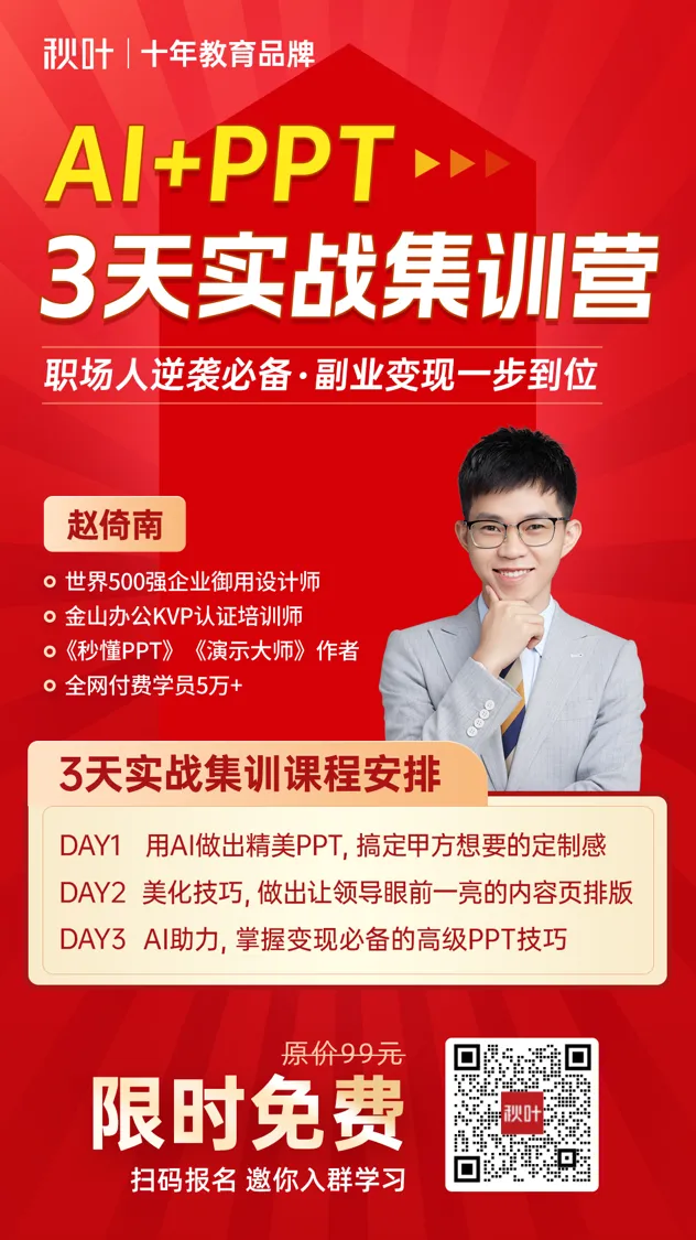 与其自己瞎摸索,不如直接来《秋叶 PPT 3 天实战集训营》抄作业!