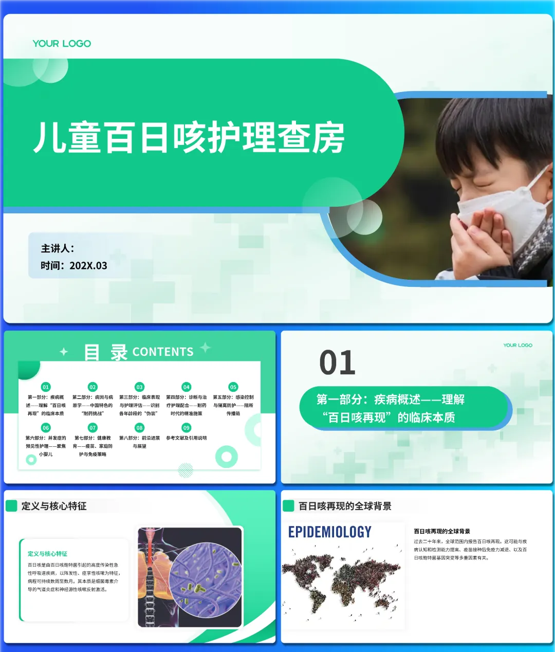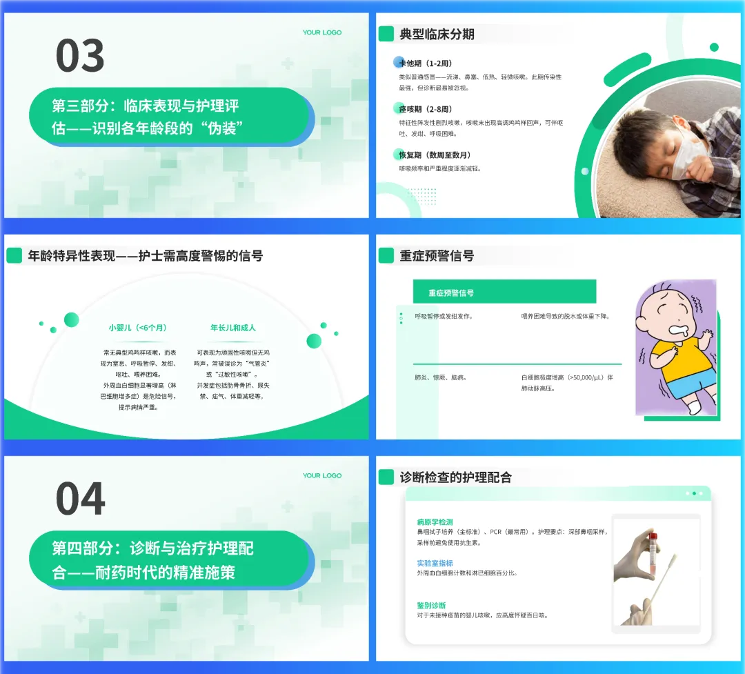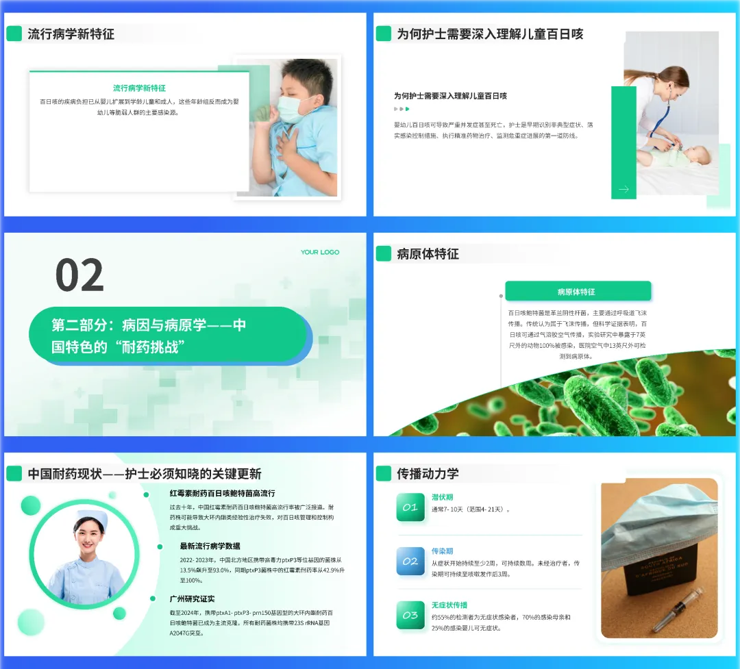 我是医览PPT,专注医护PPT课件,每天给大家带来各类医护课件(完整课件获取方式请看文末)一朝被咳缠,百日志难安。今天给大家带来的是“儿童百日咳护理查房”,这是一份直面“百日咳再现”与“中国特色耐药”双重挑战,旨在重塑临床护理认知与实战流程的精准指南。