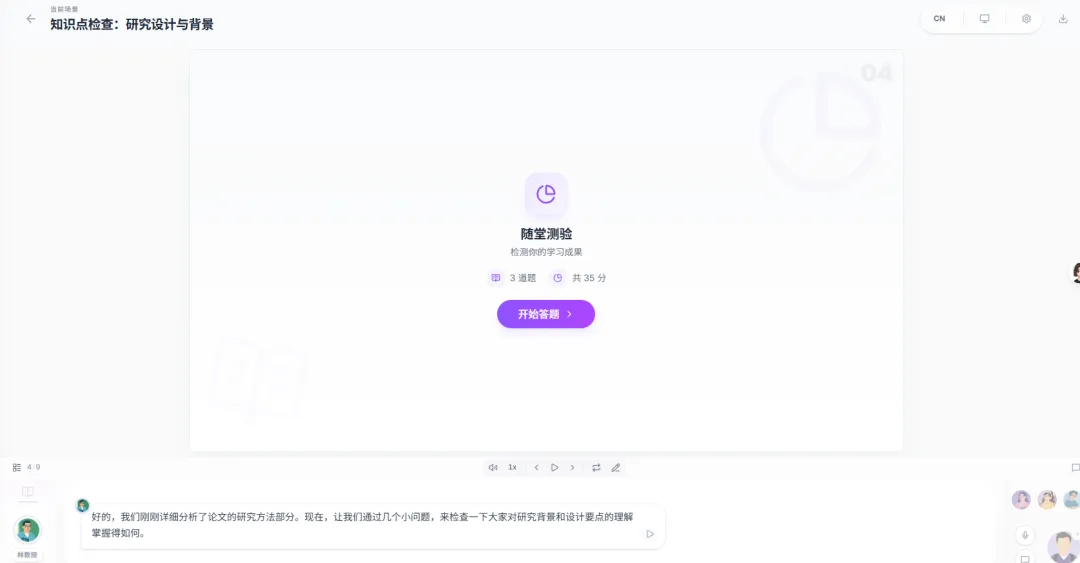 很多学生都有这样的困扰:知识点自己懂,但上台讲解就逻辑混乱、词不达意,要么过于口语化缺乏专业性,要么照搬课本晦涩难懂,难以让老师和同学听懂。OpenMAIC精准解决“讲解难”的痛点,依托其AI教师交互能力,成为你的“讲解搭子”,还原真实课堂讲解场景。