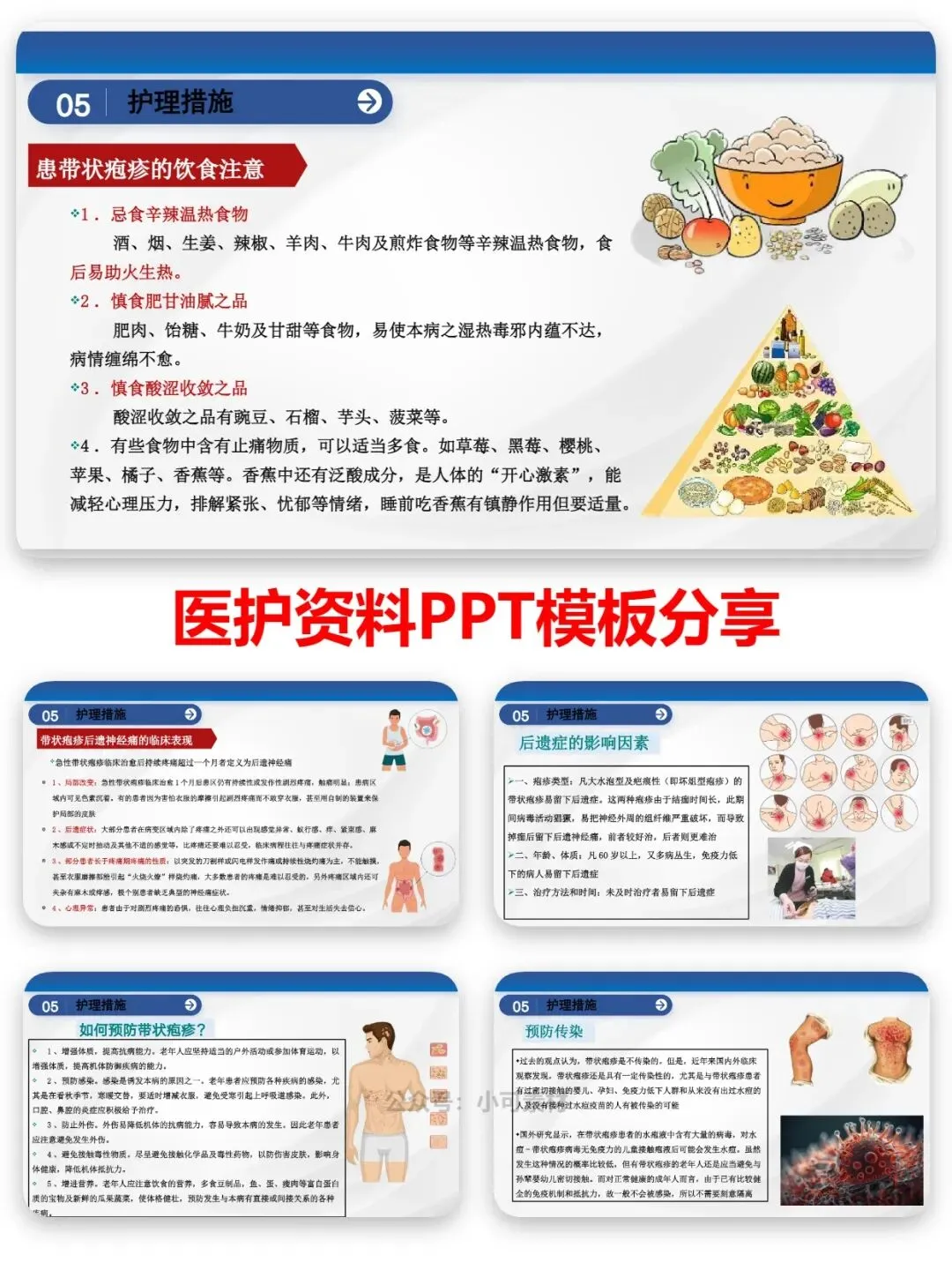 感染防控要保持环境整洁、勤换柔软床品,监测体温与白细胞,及时处理破损创面;眼部、耳部特殊类型疱疹,需做好眼部分泌物清洁、眼球保护,预防失明、面瘫等并发症。同时给予高蛋白高维生素饮食,忌辛辣温热、肥甘油腻、酸涩收敛食物,保证休息与情绪稳定,提升免疫力。