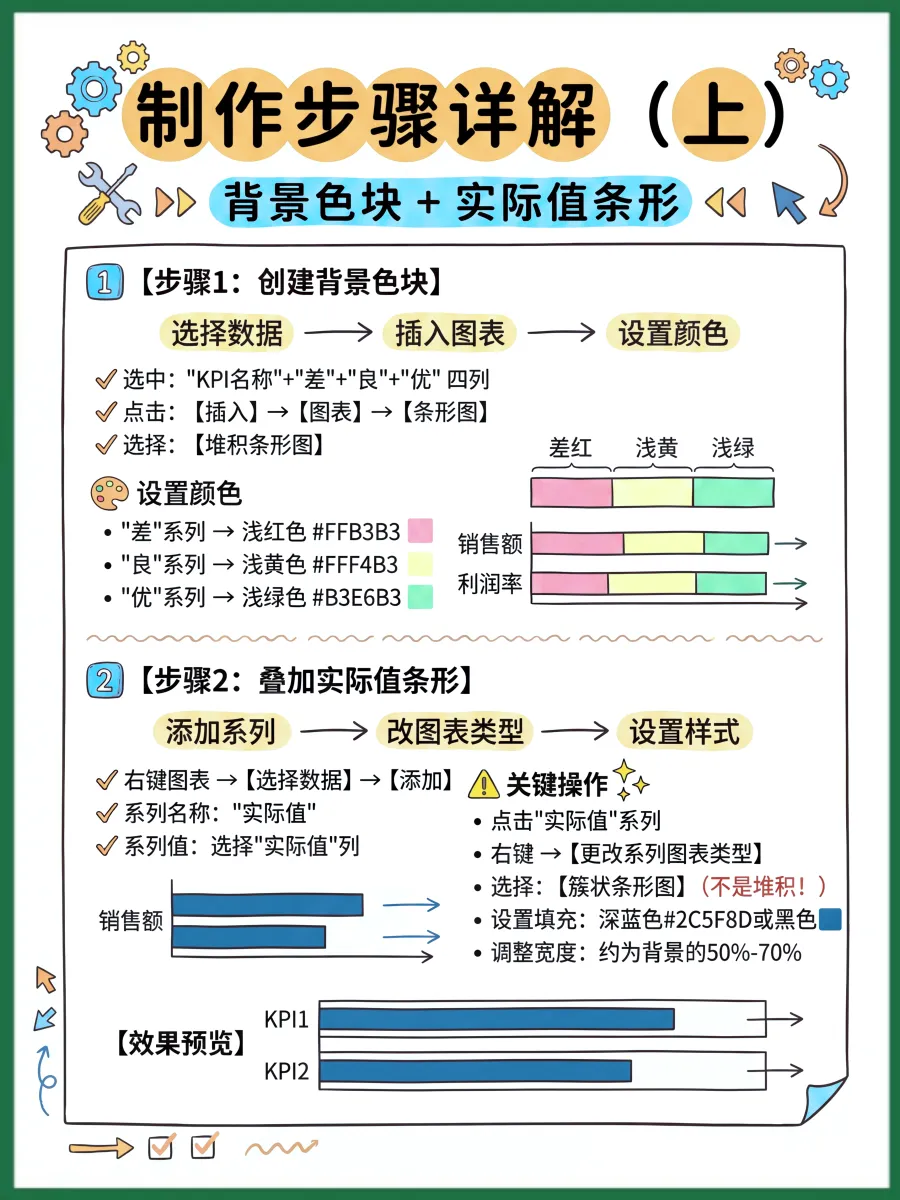 今天教你用Excel做出超专业的子弹图,让你的KPI报告瞬间高大上!