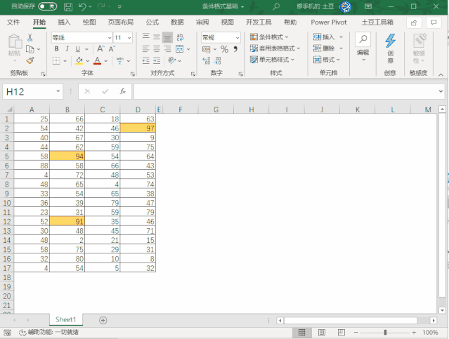 生成的这些数字中,要想找到大于90的,还真不容易,如果用条件格式把大于90的给标出来,那看起来就会容易很多了!来看一下操作动画吧!