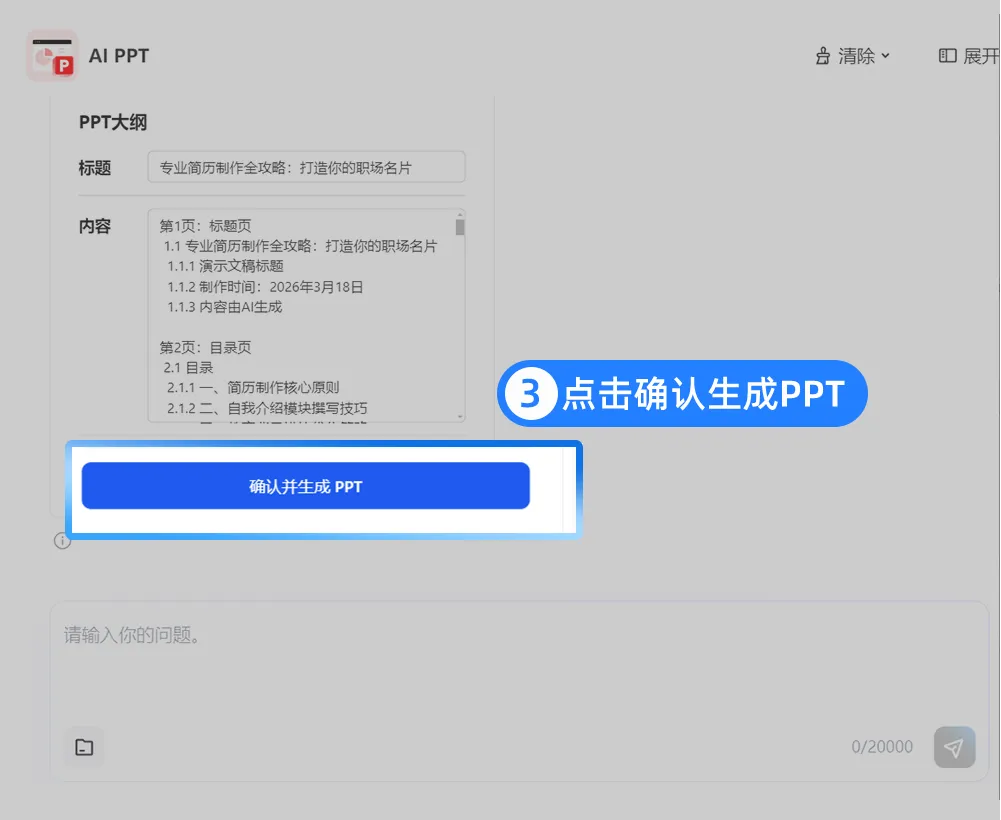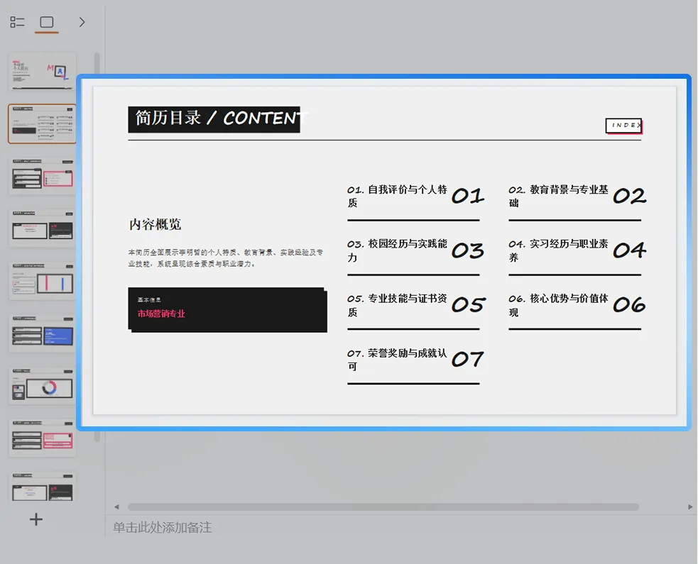现在打开「AI PPT」输入“春招自我介绍,学校、实习、作品三部分,风格简洁专业”,AI自动生成,教育背景时间轴、实习经历配图标、作品展示直接排版,非设计专业也能做出专业级作品。