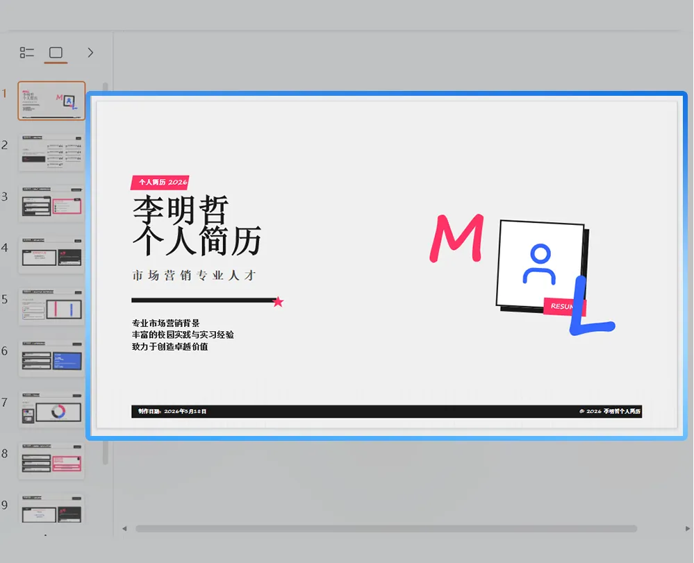 春招接到面试官电话:“面试请准备5分钟自我介绍PPT”。简历有,作品有,PPT?从来没做过…排版、配色、配图一窍不通,搜8个模板没一个能用,最后用Word打印出来举着讲。