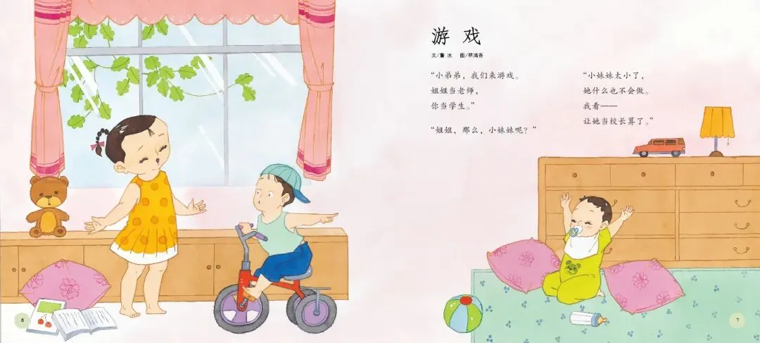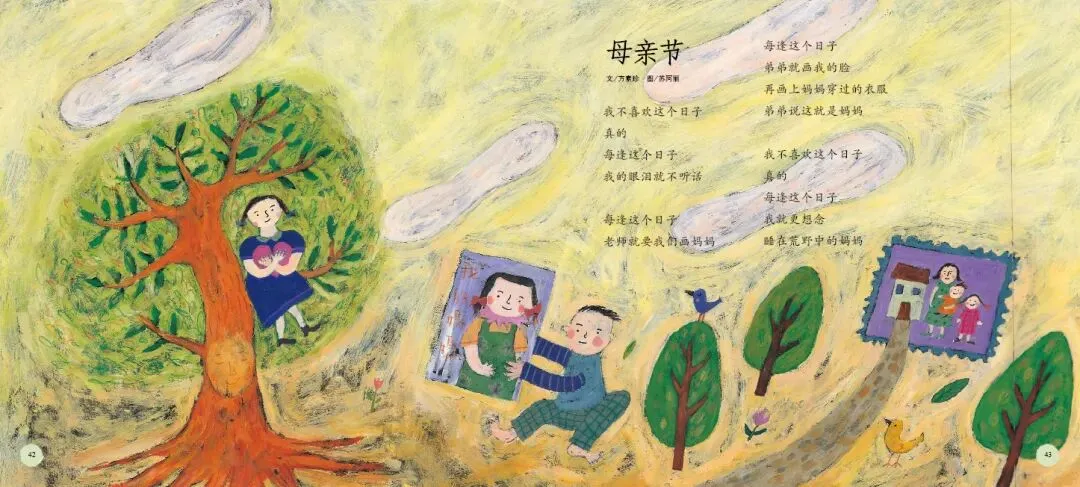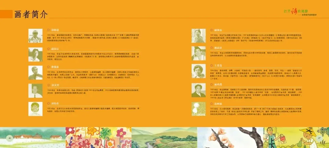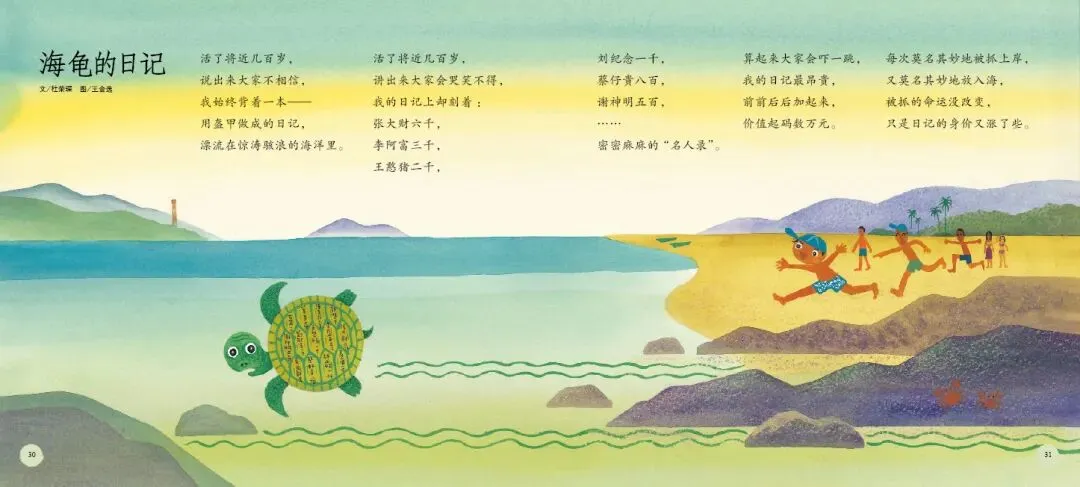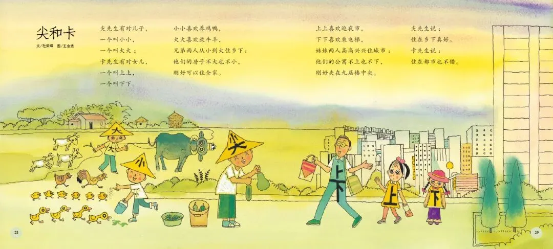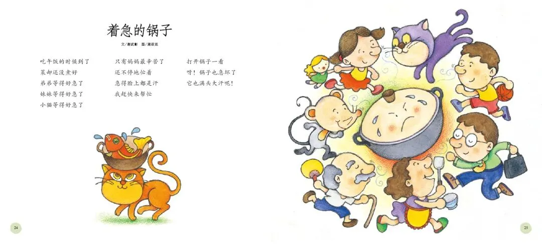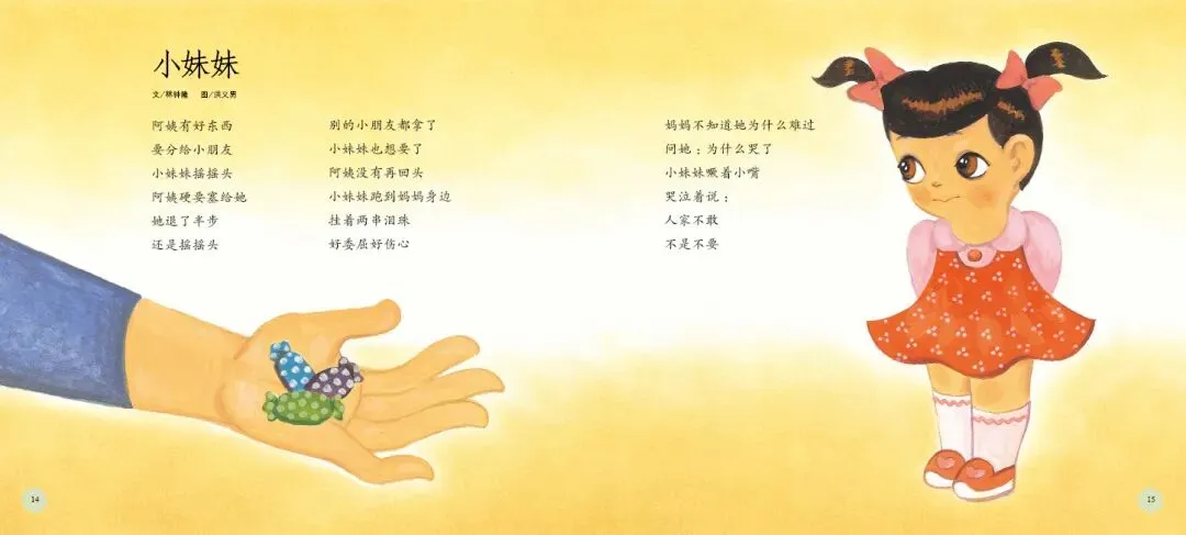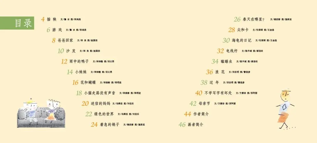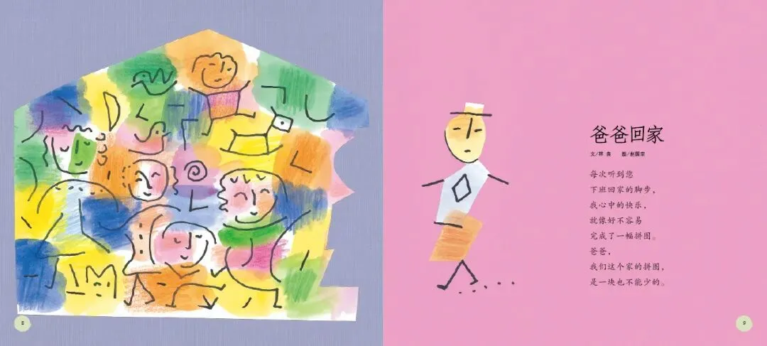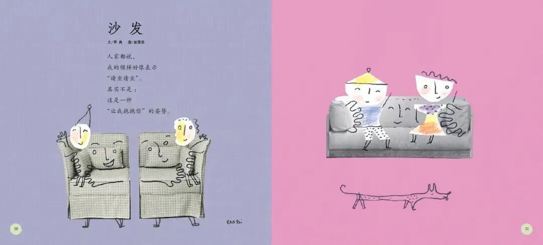 《打开诗的翅膀》是一部充满诗意与童趣的绘本。这部绘本精选了台湾十位知名童诗作家的经典作品,包括林良、詹冰、林焕彰等,每位作家贡献两首代表作,共二十首童诗,形式丰富、题材多样,充分展现了童诗的趣味与魅力。绘本中的每一首诗都充满了想象力与创造力,如林良的《沙发》通过拟人化手法,将沙发塑造成孩子可对话的伙伴,传递出“让我抱抱你”的温柔情感;而《爸爸回家》则通过孩子熟悉的家庭生活场景,以“拼图”为比喻,含蓄而深刻地表达了对父爱与家庭完整的珍视。这些诗作不仅语言浅白易懂,而且情感真挚动人,能够轻易触动孩子的心灵。