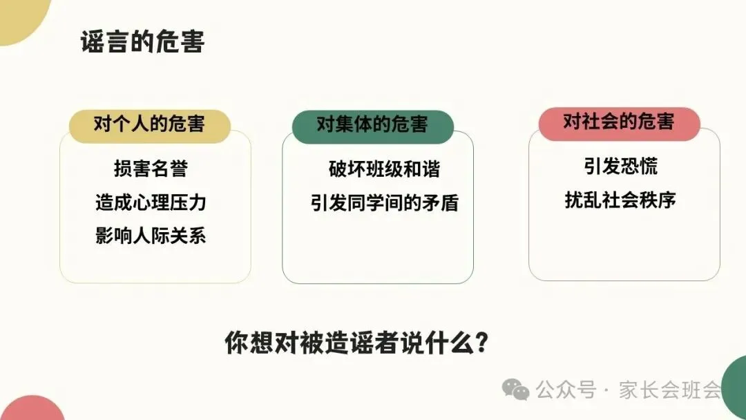 人际沟通班会ppt:谣言止于智者。不造谣,不信谣,不传谣。