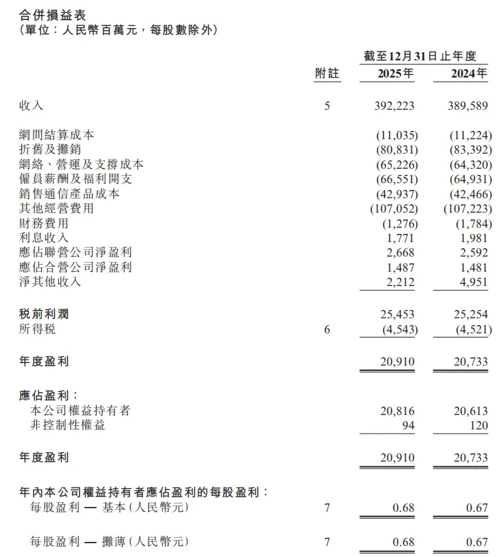 公司全年资本开支542亿元,资本开支占服务收入比下降至16%,通过深化共建共享,打造极简网络,年化节约OPEX13.5亿元,提升了投资效能。2026年资本开支预计在500亿元左右,其中算力投资占比超过35%。