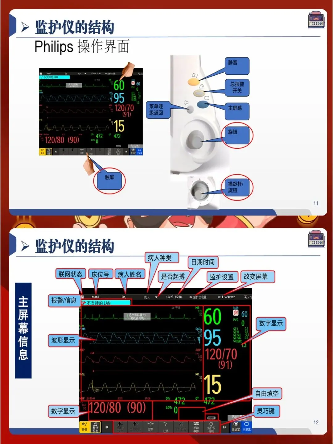 一级报警(红色):需立即响应的危急值,如心室颤动、心室扑动、心脏停搏、心率<40或>180次/分、SpO2<85%、收缩压<80或>200mmHg。护理人员应在1分钟内到达床旁,评估患者意识、呼吸、循环状态,立即启动急救流程。