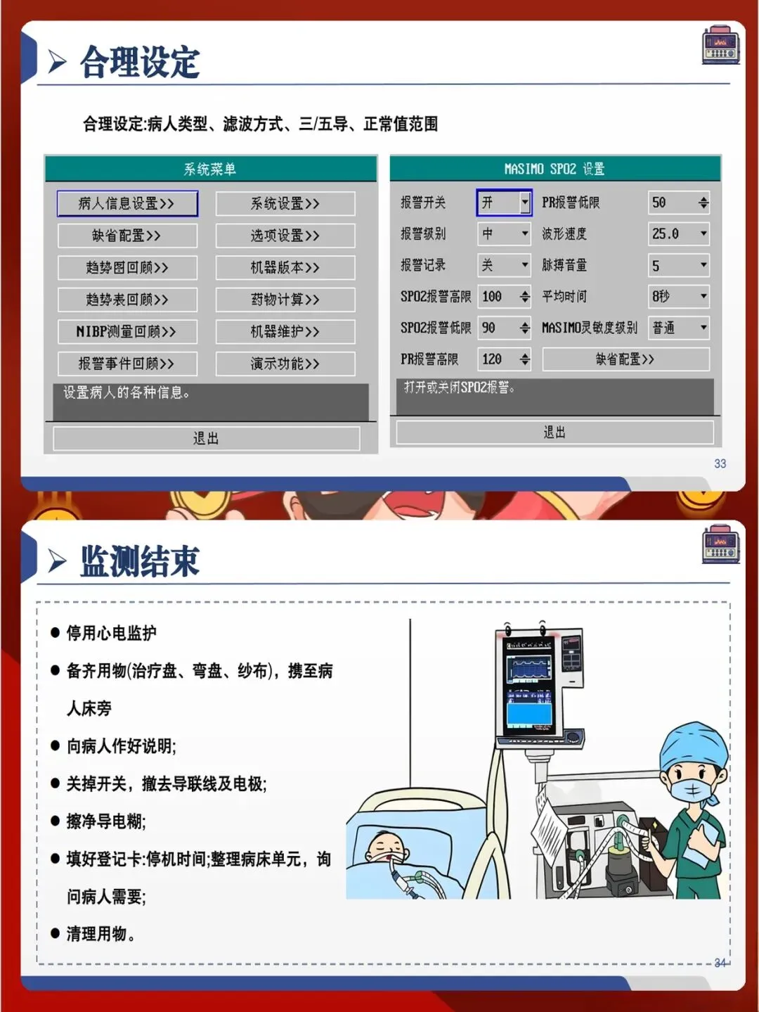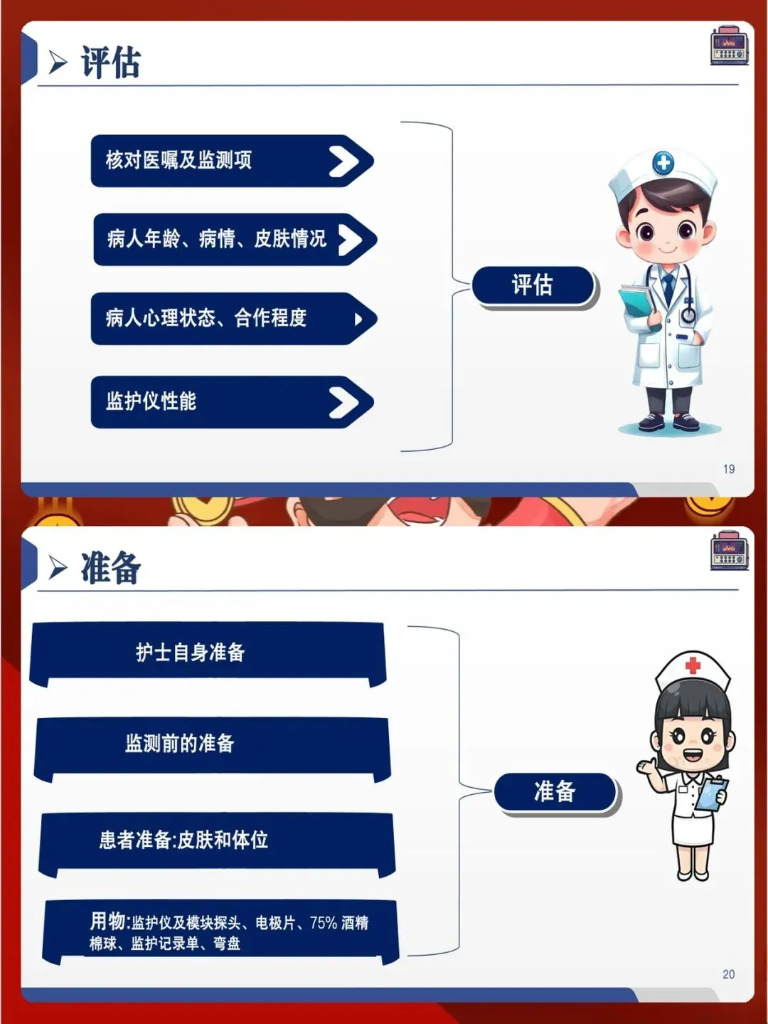 患者告知:向患者解释监护目的,告知报警可能的声音与处理流程,减轻焦虑。指导患者避免牵拉导联线、频繁活动监测肢体。