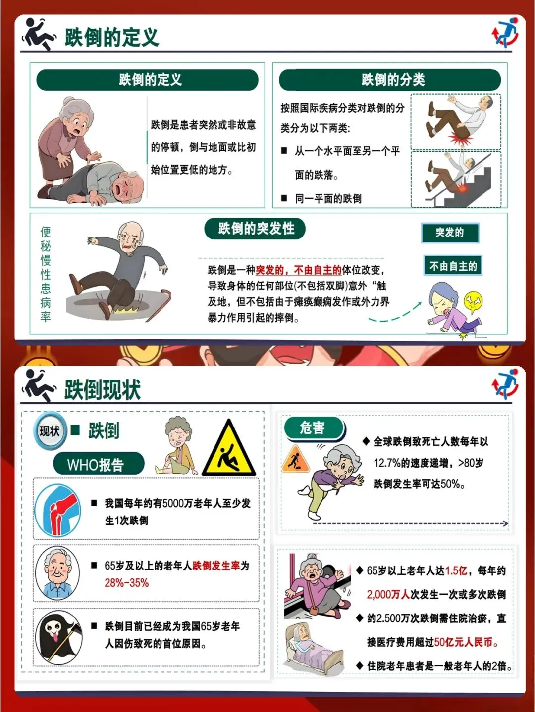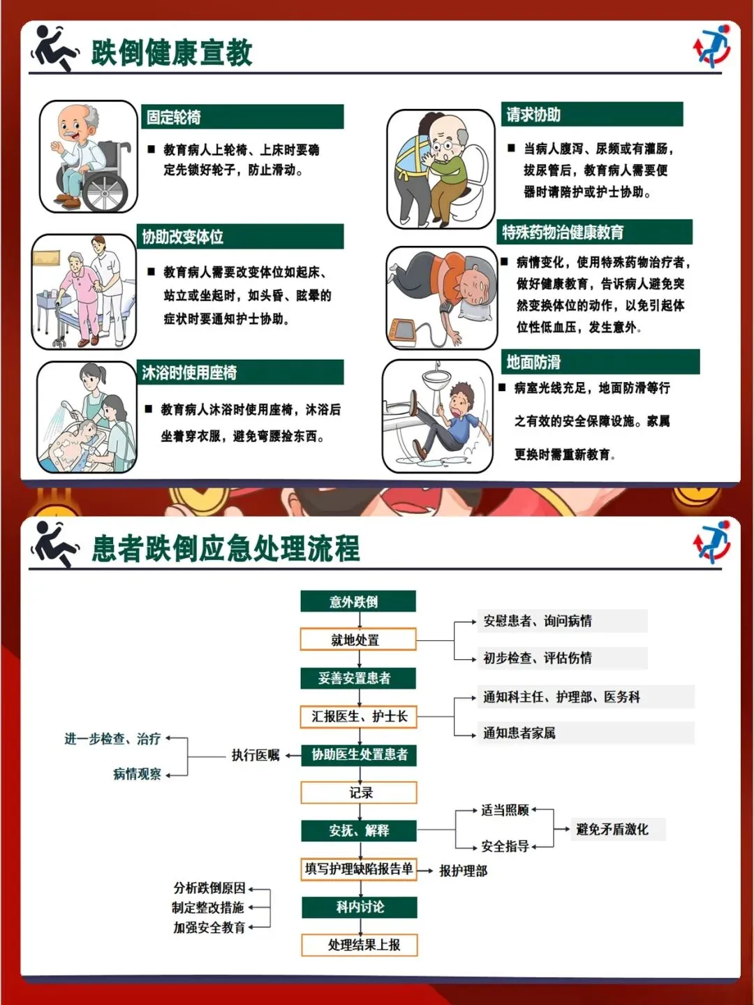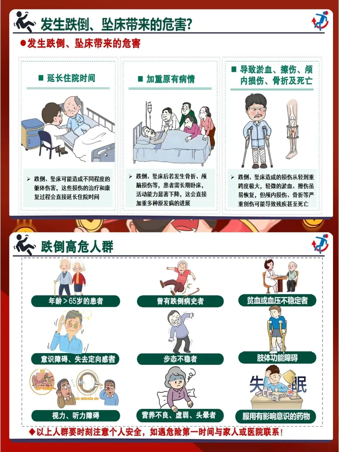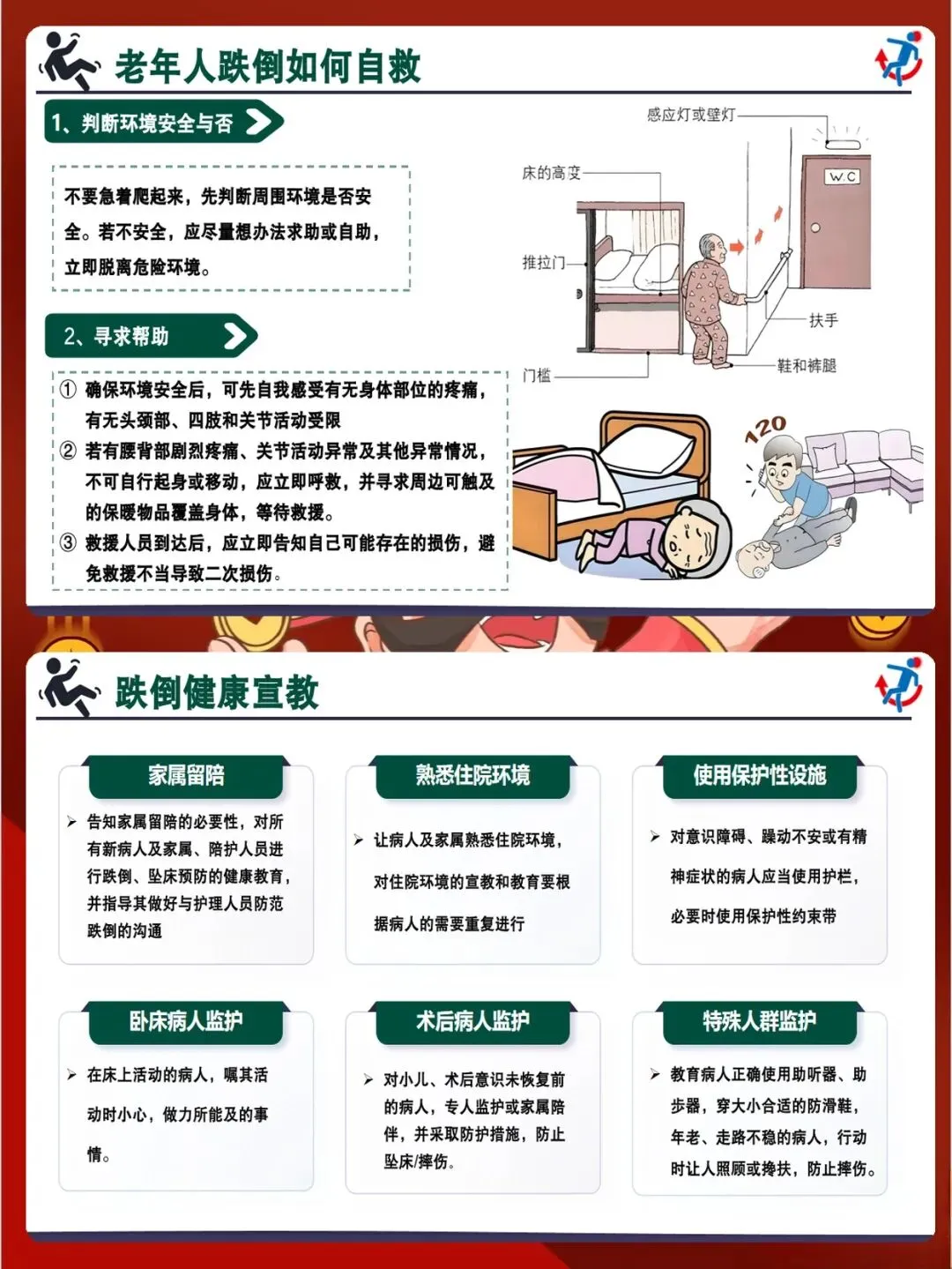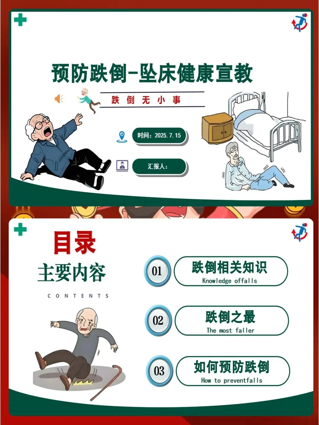 跌倒与坠床是医院护理安全管理的重点问题,不仅可能导致患者软组织损伤、骨折、颅脑损伤等直接伤害,更可能延长住院时间、增加医疗费用、引发医疗纠纷。老年人、术后患者、意识障碍者、使用镇静药物者均为高危人群。科学的预防措施与系统的健康宣教是降低跌倒坠床发生率的关键。以下从风险评估、环境管理、护理措施、患者教育、家属配合五个维度,系统梳理预防跌倒-坠床的核心策略。一、风险评估:早期识别高危患者